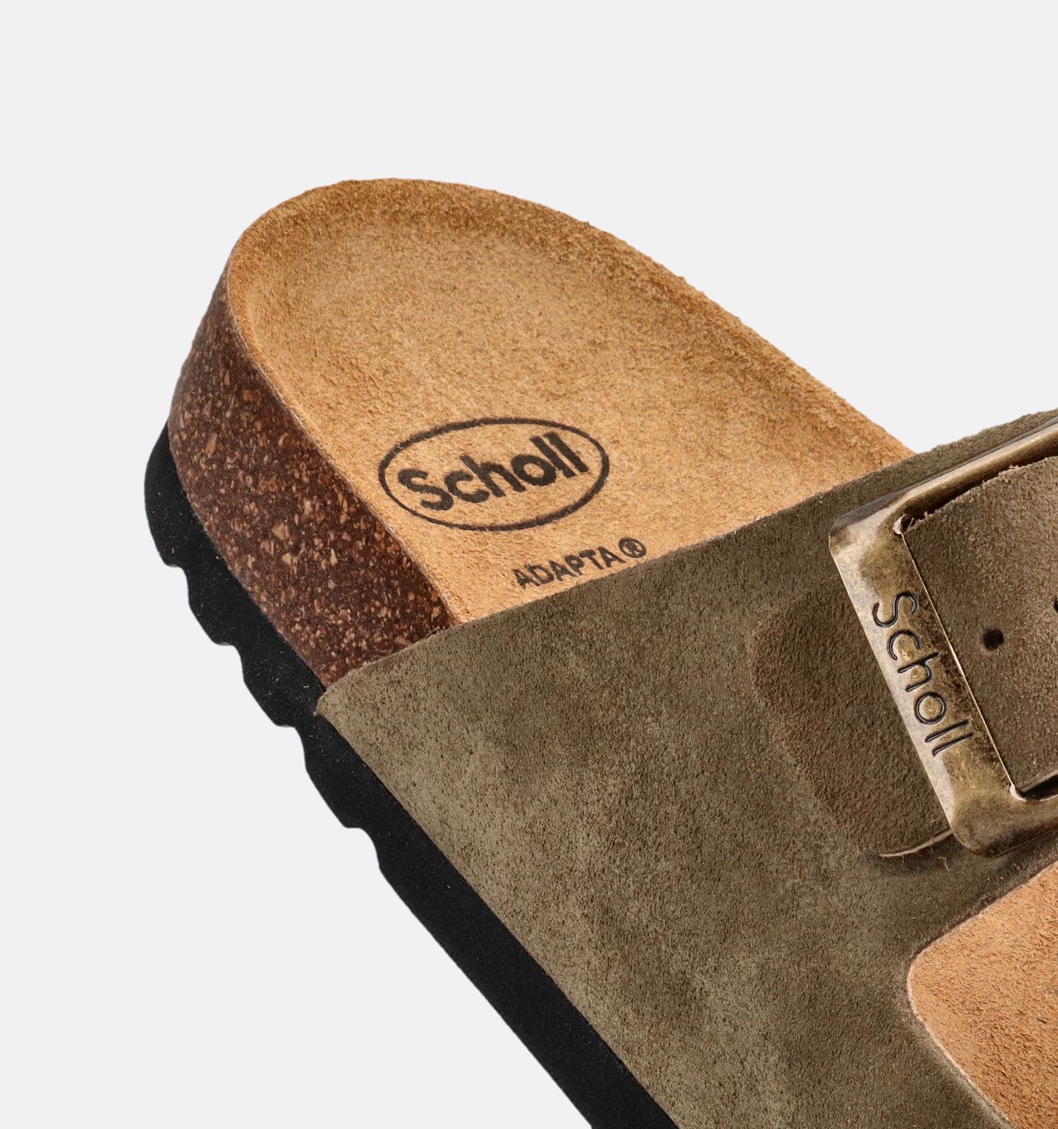 Ces sandales plates de Scholl sont également dotées d’une finition en vert daim. Elles sont parfaites avec n’importe quelle tenue estivale décontractée – idéales pour une terrasse, se détendre au jardin ou partir en excursion. Et bon à savoir : ce modèle convient pour une largeur de pied F - Semelle normale.