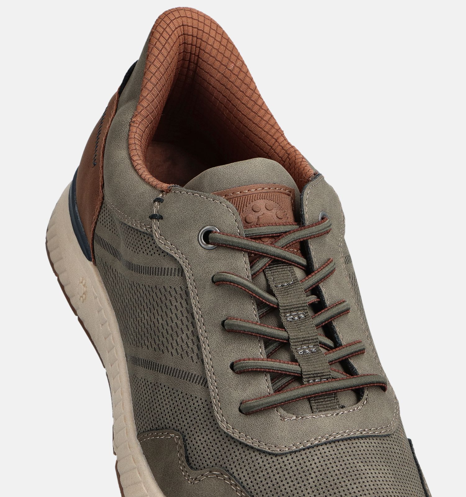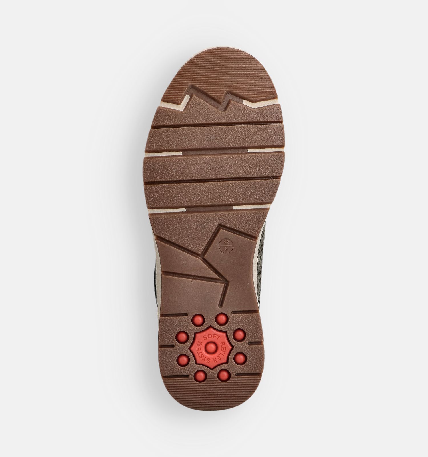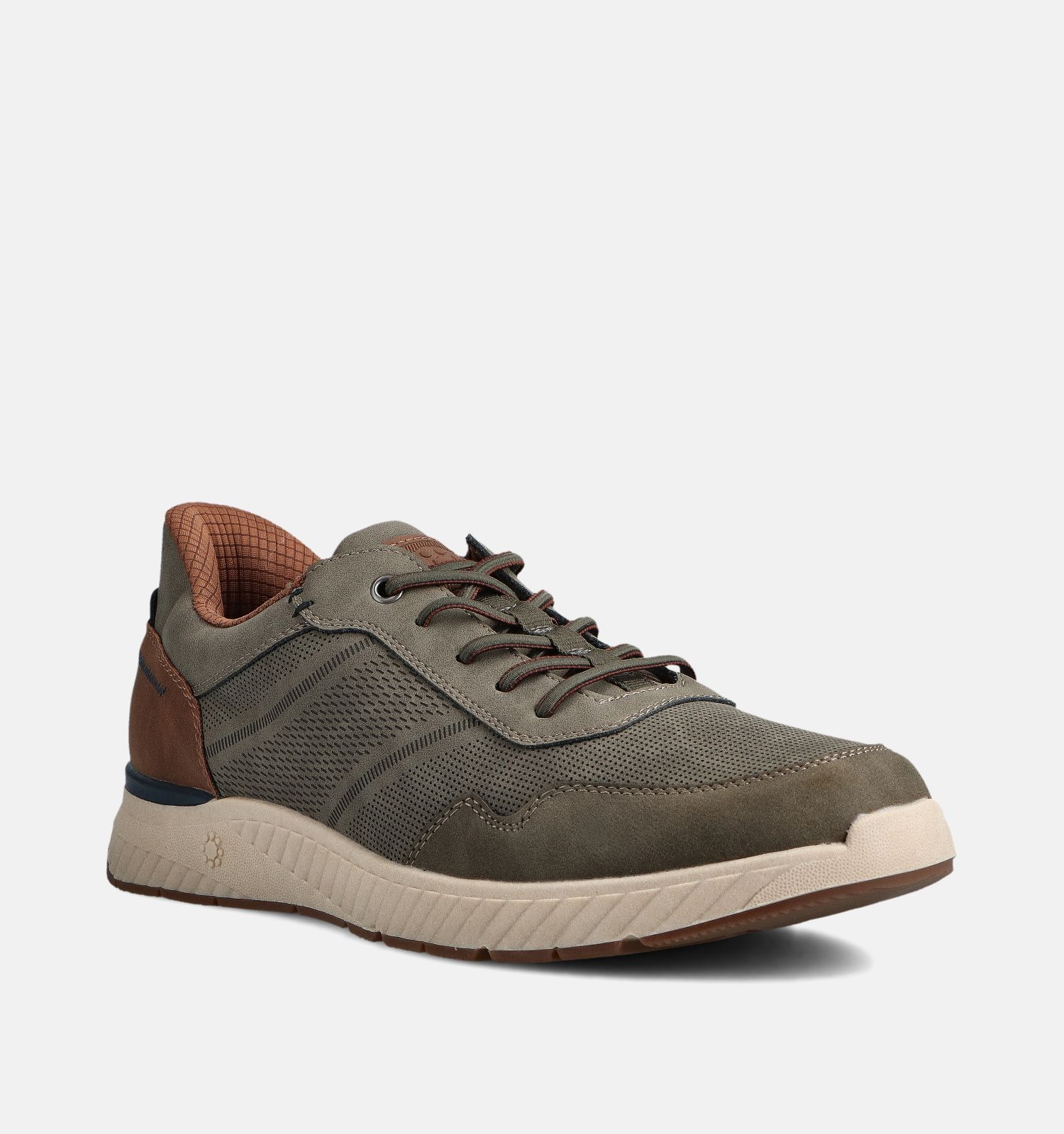 En termes de confort, ces baskets en vert pour homme obtiennent un score élevé. Les semelles semi-flexibles et résistantes permettent aux pieds de rouler agréablement pendant la marche. Cela augmente considérablement le confort de la marche. La coupe de ces baskets Relife convient parfaitement aux pieds des hommes : il y a beaucoup d'espace pour les orteils, la voûte plantaire est bien soutenue et la section renforcée du talon offre une stabilité supplémentaire. La largeur de chaussure de ce modèle en vert avec fermeture lacets est F - Semelle normale.