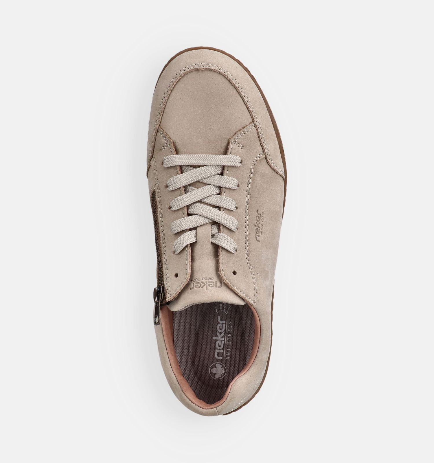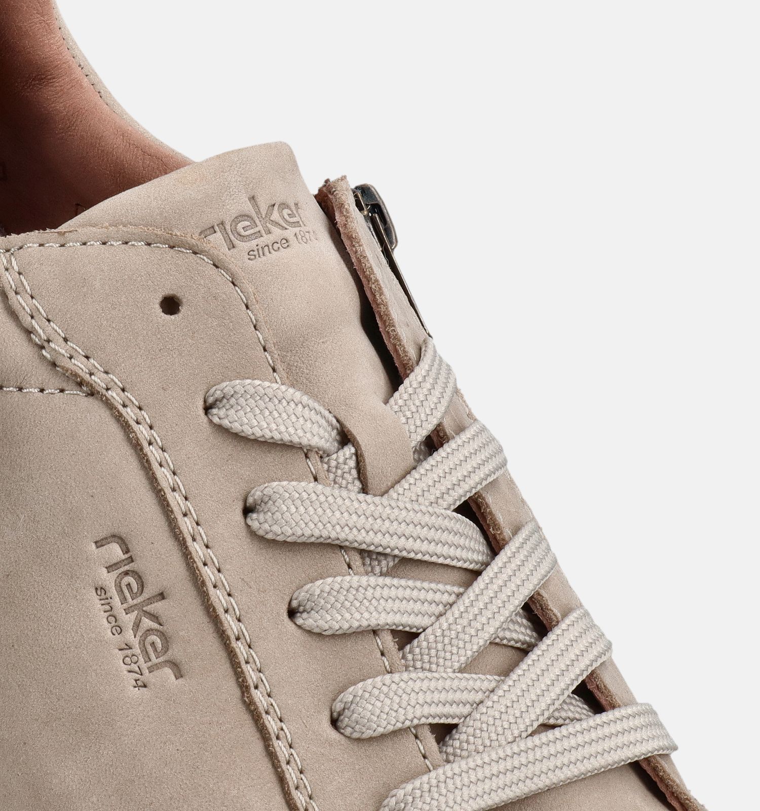 Ces baskets pour hommes est fabriqué en daim ultrarobuste et son intérieur se compose de cuir confortable. Ces matériaux de qualité sont particulièrement légers, un antidote à la sensation reconnaissable de pieds lourds après un certain temps. Ces baskets Rieker en beige pour hommes possède une fermeture lacets.
