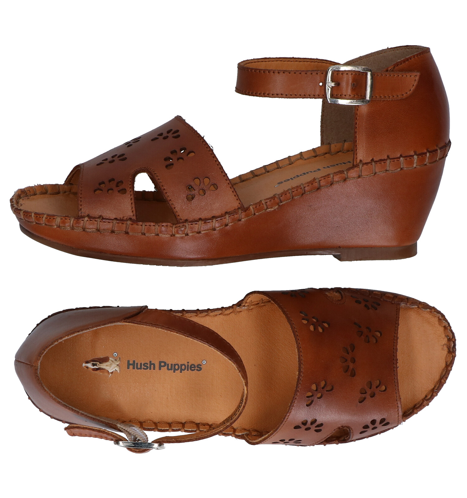 Hush Puppies Sandales compensées en Cognac