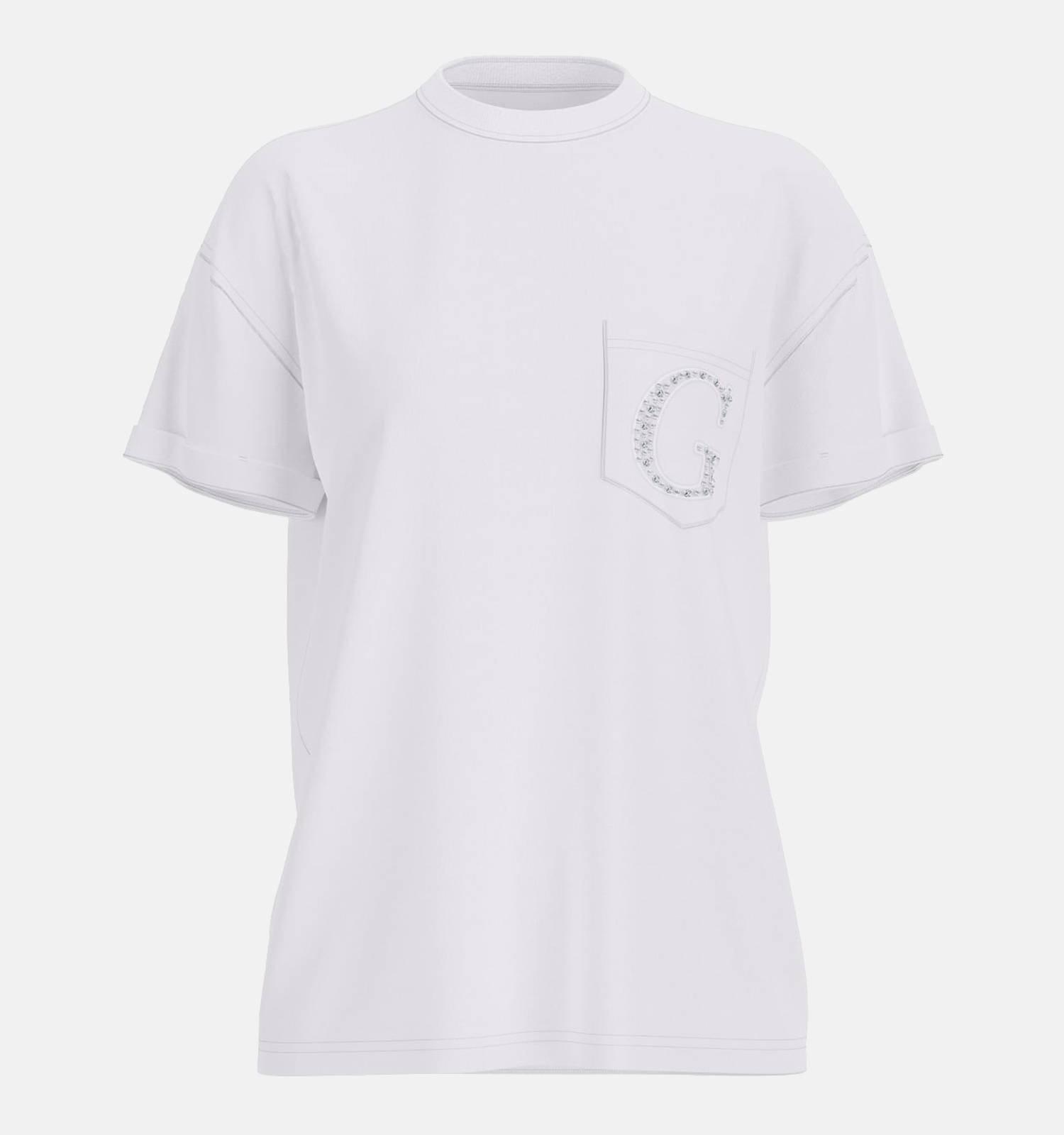 Ce T-shirt a manches courtes, ce qui vous permet de profiter de ce beau modèle toute l'année ! Autre point important : ce modèle Guess a une coupe droit. Il convient donc à toutes les morphologies. Ce T-shirt en blanc pour femmes a un joli col col rond que vous pouvez éventuellement mettre en valeur avec vos colliers préférés.