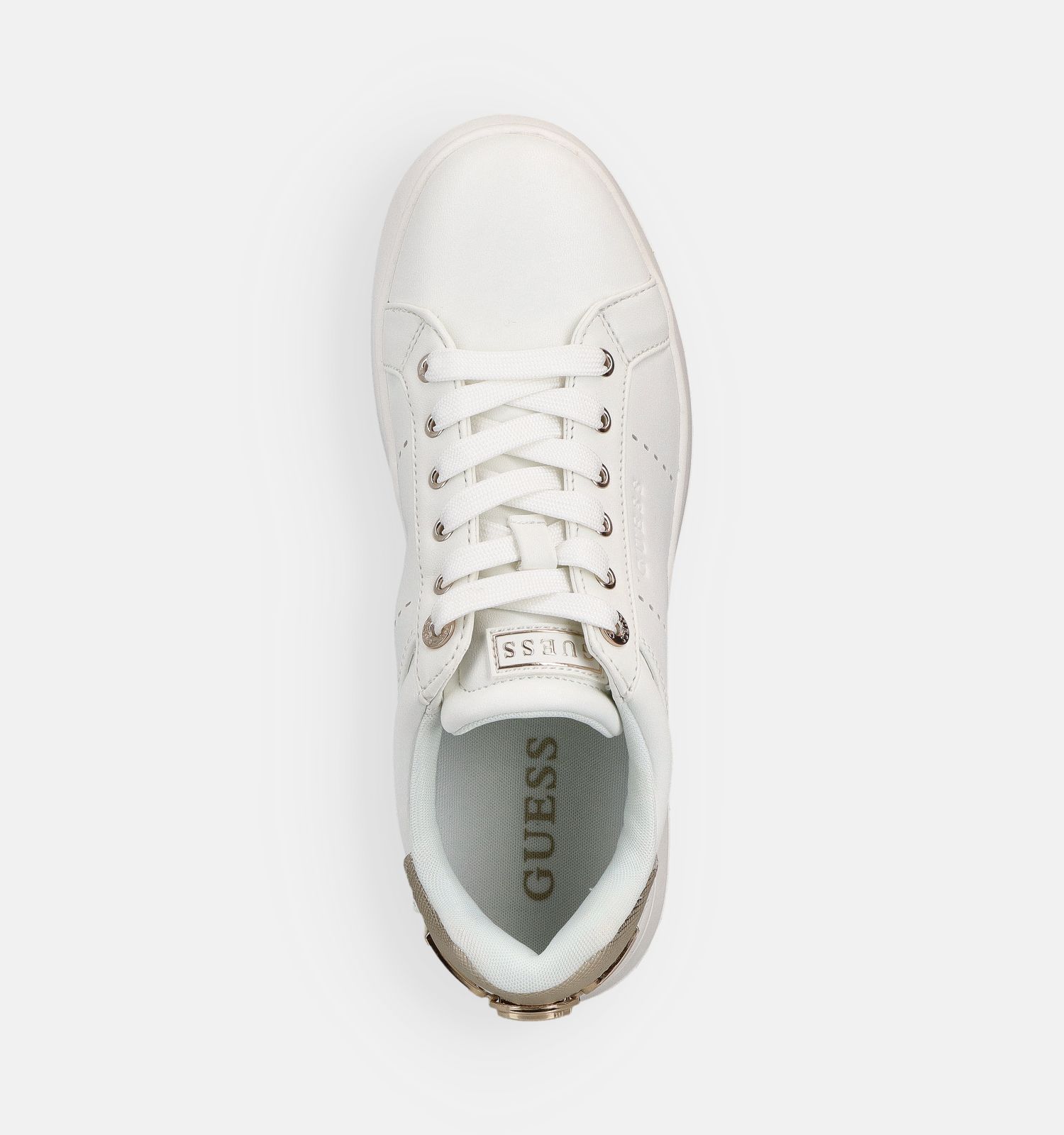 Ces baskets en blanc ont une fermeture lacets. Elle permet de garder les baskets bien en place pendant la marche ! La largeur de chaussure de ce modèle de Guess est F - Semelle normale.
