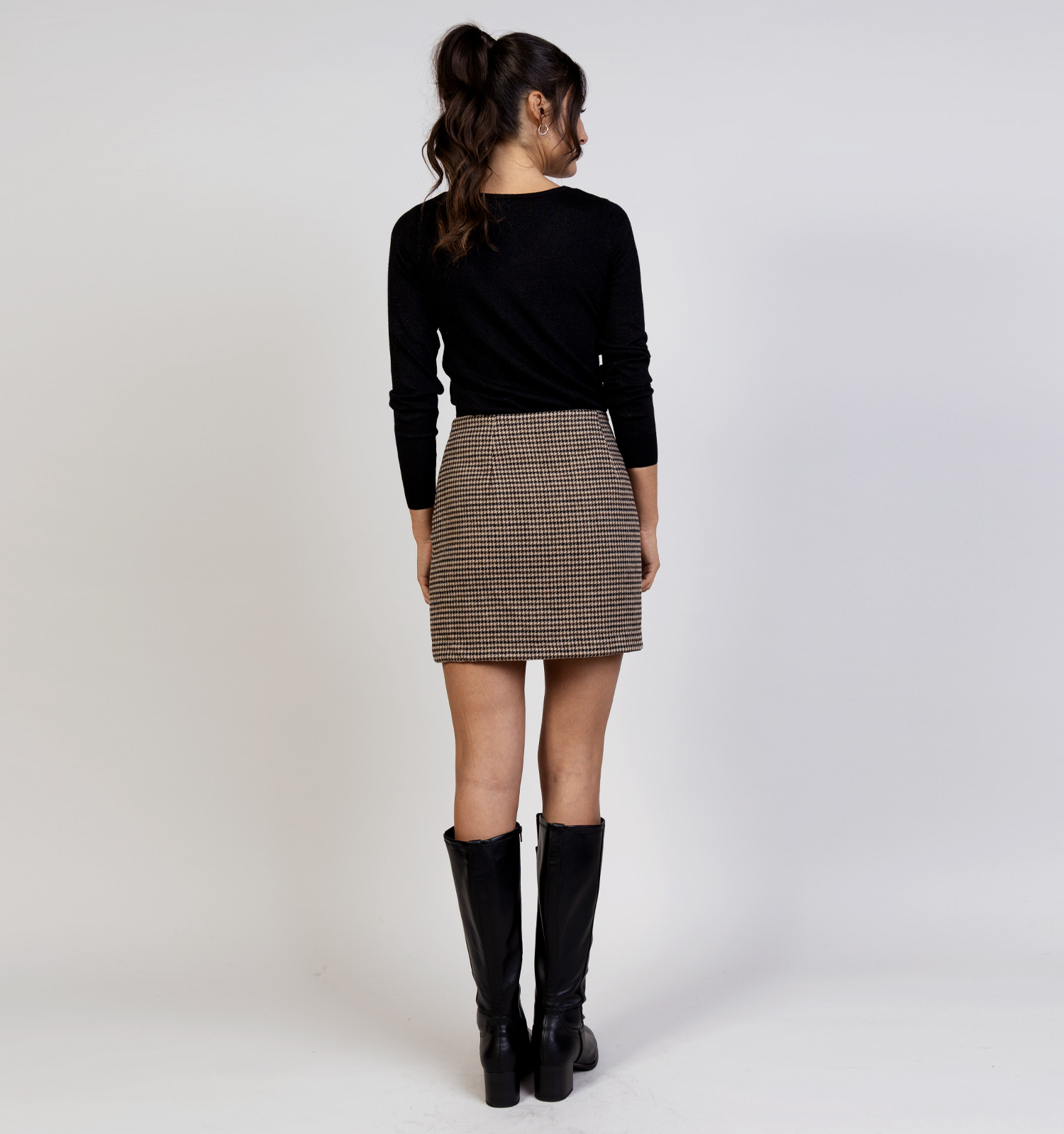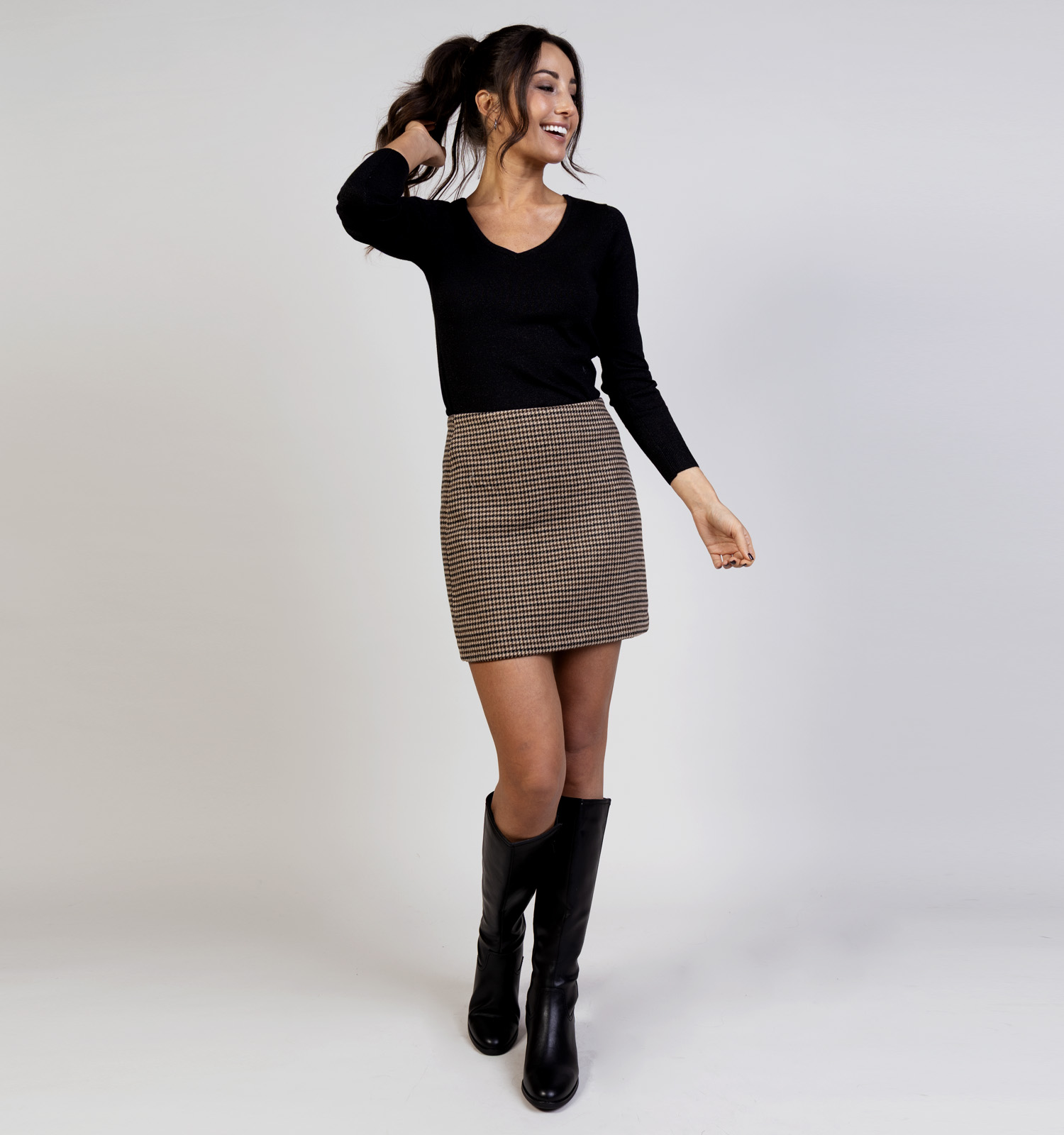 Les bottes conviennent également, bien que nous recommandions d'opter pour des bottes courtes (juste au-dessus des chevilles), des bottes mi-mollet ou des bottes au-dessus du genou. Ces longueurs s'harmonisent parfaitement avec cette jupe courte JDY. Vous n'arrivez pas à vous décider entre ces options? Laissez alors la météo et la température décider pour vous!