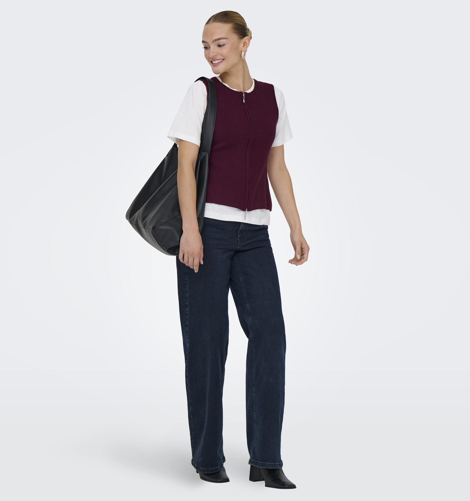 Alerte tendance ! Les gilets sans manches, comme cet exemplaire en bordeaux de JDY, sont massivement repérés chez les influenceuses mode. Porte-le comme les it-girls : en top, avec un bandeau ou un petit top tube subtilement dissimulé en dessous. On le voit aussi souvent combiné avec une blouse à manches longues ou un T-shirt ! Ça donne un côté plus classique, même si le look casual-chic de ce gilet sans manches de JDY apporte quand même quelque chose en plus. C'est le genre de pièce qui te permet d'avoir l'air impeccable, même sans trop réfléchir. Tendance, facile et sympa !