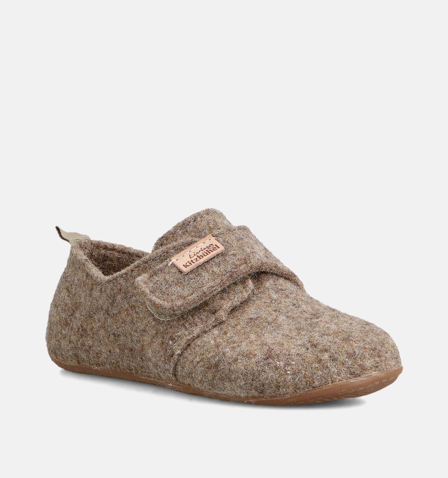 Ces pantoufles en beige pour garçons ont une fermeture velcro, qui permet aux garçons de les mettre et de les enlever facilement.