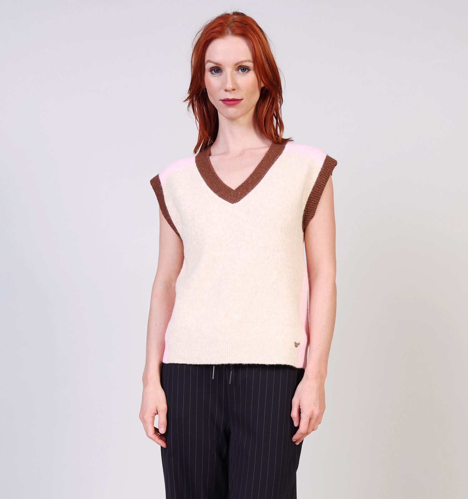 Alerte tendance ! Les gilets sans manches, comme cet exemplaire en beige de Orfeo, sont massivement repérés chez les influenceuses mode. Porte-le comme les it-girls : en top, avec un bandeau ou un petit top tube subtilement dissimulé en dessous. On le voit aussi souvent combiné avec une blouse à manches longues ou un T-shirt ! Ça donne un côté plus classique, même si le look casual-chic de ce gilet sans manches de Orfeo apporte quand même quelque chose en plus. C'est le genre de pièce qui te permet d'avoir l'air impeccable, même sans trop réfléchir. Tendance, facile et sympa !