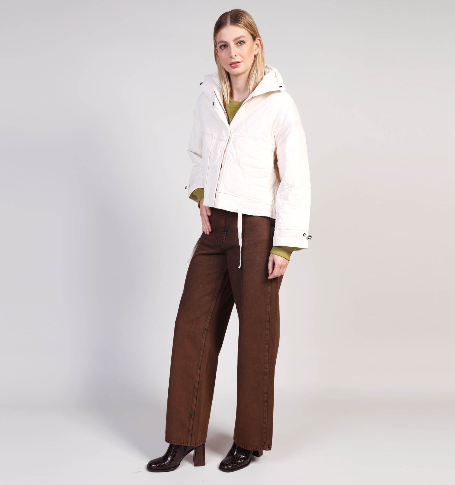Cette veste en beige pour femme a une coupe fluide. Cette veste Orfeo a donc une très belle coupe, adaptée à toutes les morphologies. Si vous aimez porter de gros pulls confortables, nous vous recommandons de choisir une taille au-dessus pour un ajustement optimal.