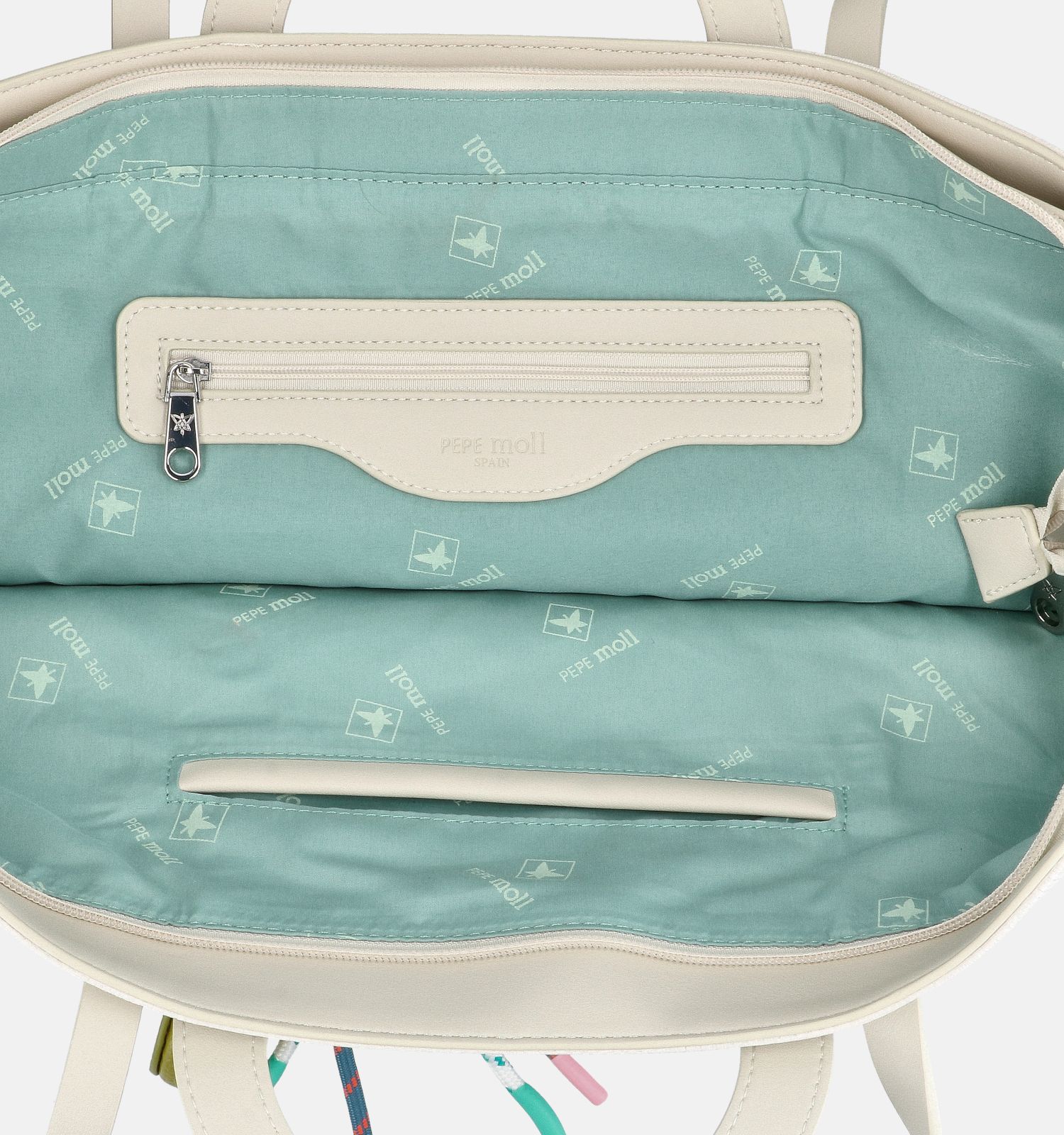 La fonctionnalité et le design moderne sont des éléments importants pour vous ? Alors ce sac Pepe Moll est fait pour vous ! Les sacs shopper ont un intérieur spacieux, ce qui est toujours pratique. Par exemple, ce modèle en blanc a des dimensions de 33 cm x 16 cm x 52 cm. Il y a donc de la place pour tout ce que vous voulez emporter, par ex. des lunettes de soleil, quelques collations pour les enfants et/ou un petit parapluie. Le sac parfait pour une utilisation quotidienne ! Ce cabas en blanc de la grande marque Pepe Moll deviendra sans aucun doute votre nouveau sac préféré ! Bon à savoir également : ce shopper casual-chic est fabriqué en simili cuir. Entretenez ce sac avec un produit approprié pour en profiter le plus longtemps possible.