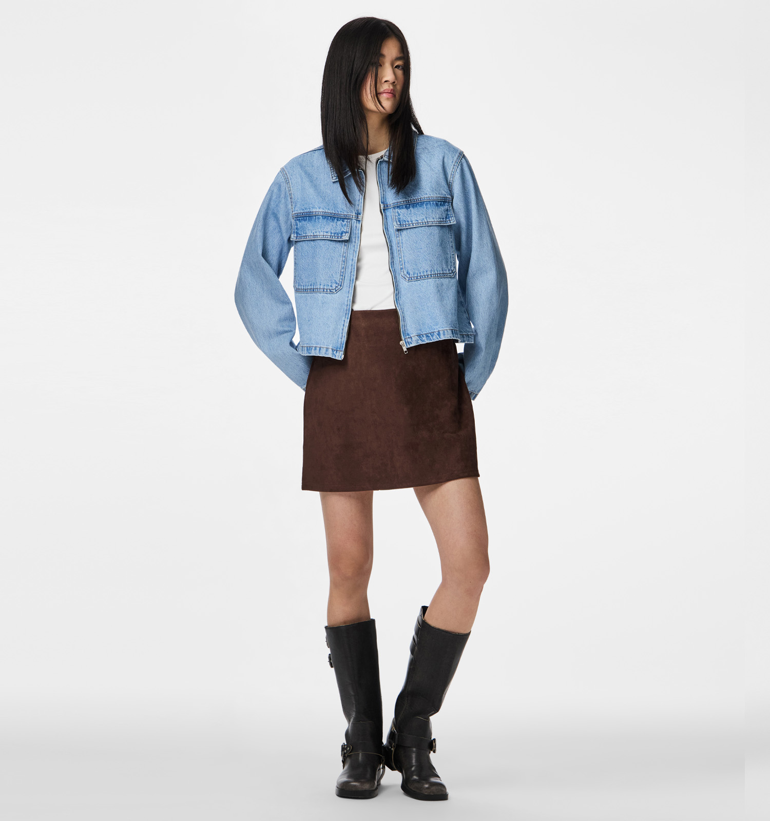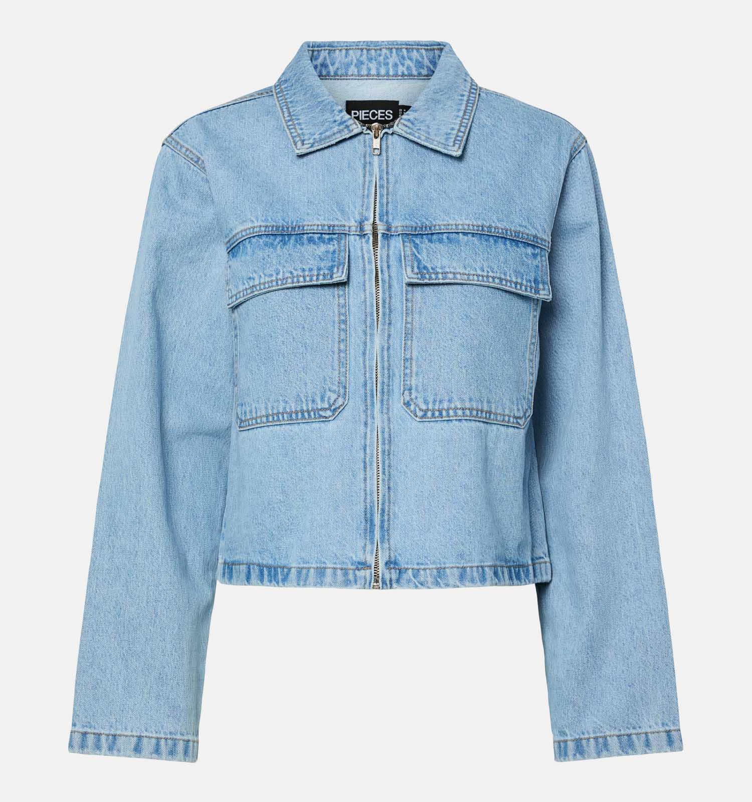 Cette veste en bleu pour femme a une coupe droit. Cette veste Pieces a donc une très belle coupe, adaptée à toutes les morphologies. Si vous aimez porter de gros pulls confortables, nous vous recommandons de choisir une taille au-dessus pour un ajustement optimal.