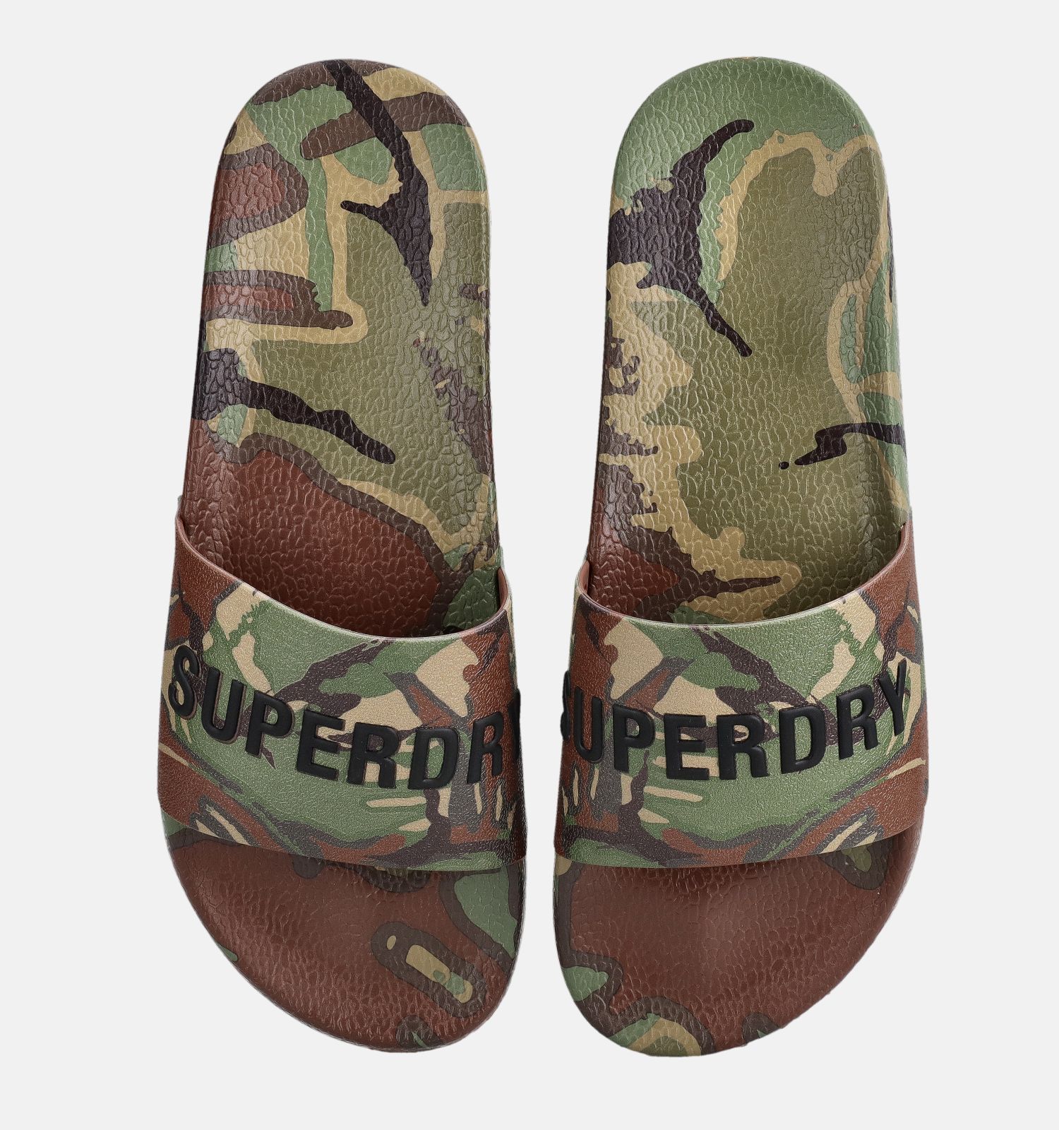Superdry Camo Print Pool Slide Claquettes en Vert kaki/Marron