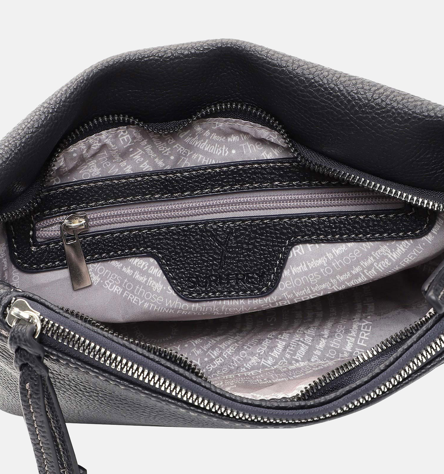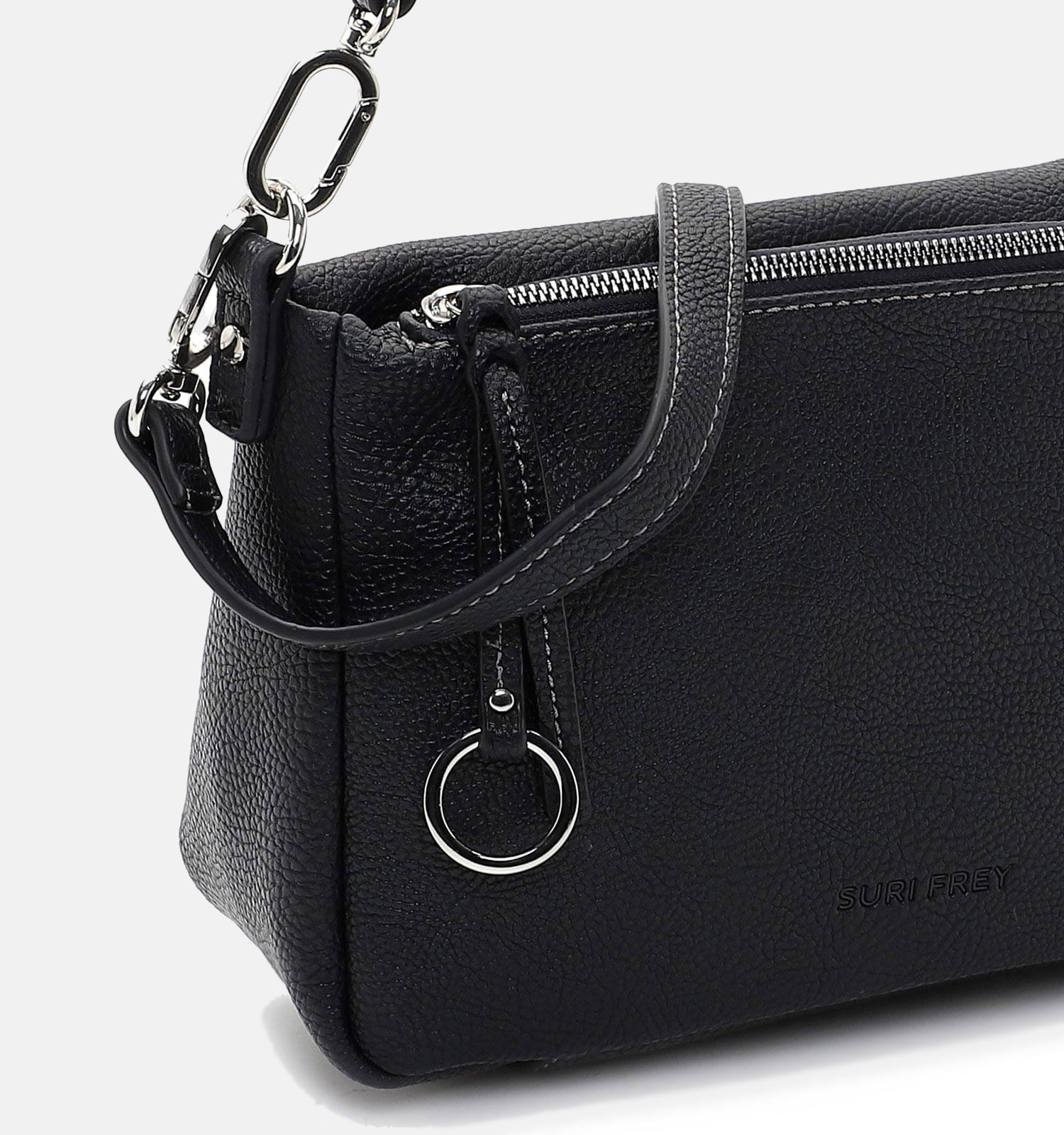Transformez ce sac Suri Frey en un joli sac porté croisé en utilisant la bandoulière incluse gratuitement. Cette bandoulière supplémentaire se fixe au sac en un clin d'œil et s'enlève tout aussi rapidement. Vous pouvez donc choisir comment porter ce sac en bleu Suri Frey, sur l'épaule via la bandoulière plus courte ou en diagonale sur votre corps via la bandoulière plus longue. Vous parlez de multifonctionnalité !