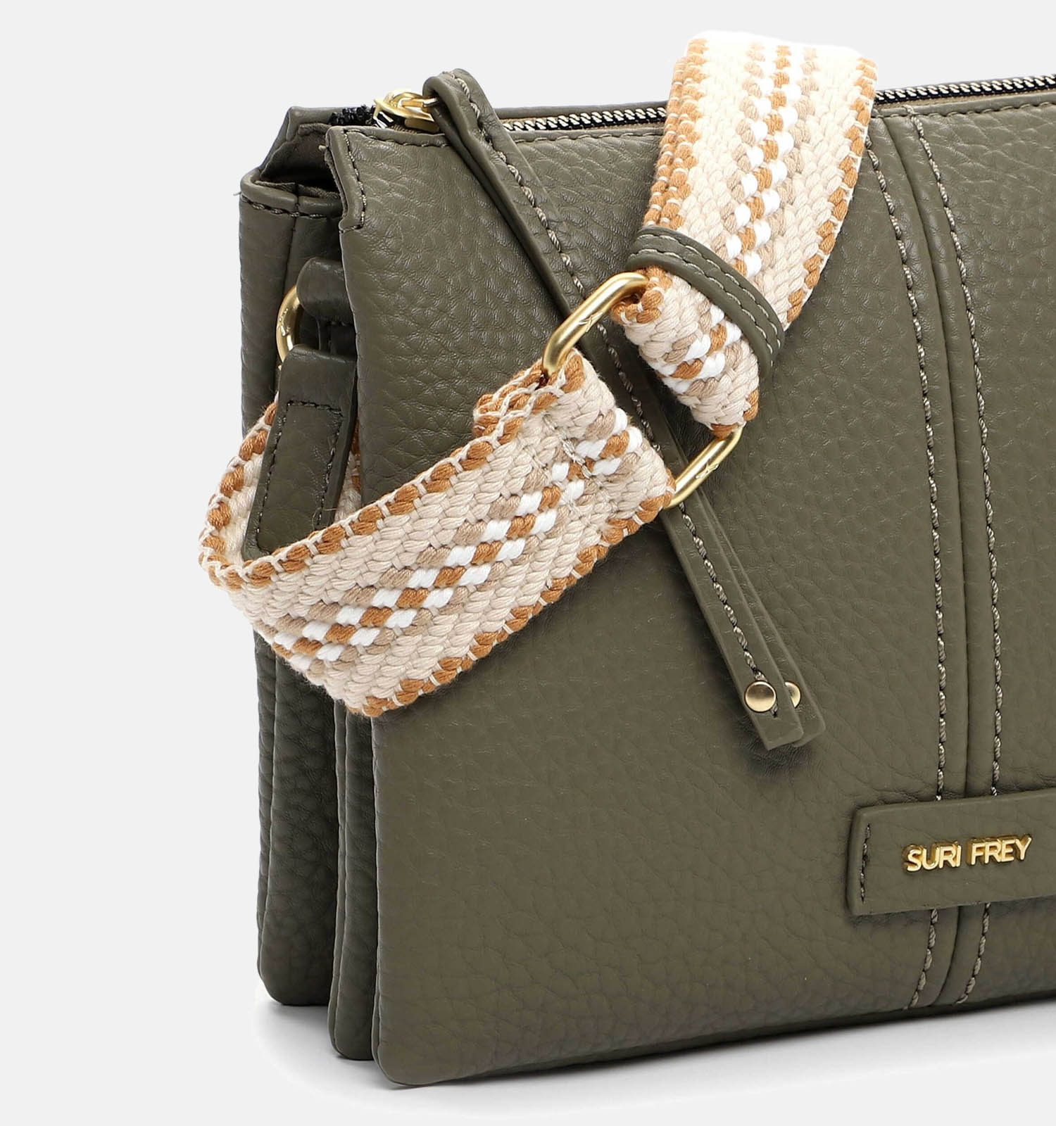 Ce sac en vert de Suri Frey est la cerise sur le gâteau pour toutes vos tenues. Ce sac porté croisé est un peu plus grand avec sa longueur de 25 cm et sa largeur de 8 cm. Un choix parfait si vous aimez vous sentir préparée, et si vous préférez emporter un peu plus de choses (comme par ex. des mouchoirs, du baume à lèvres, des lunettes de soleil, un médicament antidouleur et/ou une petite collation). Tant de place, c'est un bonheur ! Heureusement, le matériau de ce sac Suri Frey (simili cuir) est de qualité supérieure fiable, ce qui le rend solide et robuste. La bandoulière de ce sac Suri Frey est réglable. Un conseil de style : associez ce sac porté croisé tendance à des chaussures en vert. Cela crée un joli look uniforme !