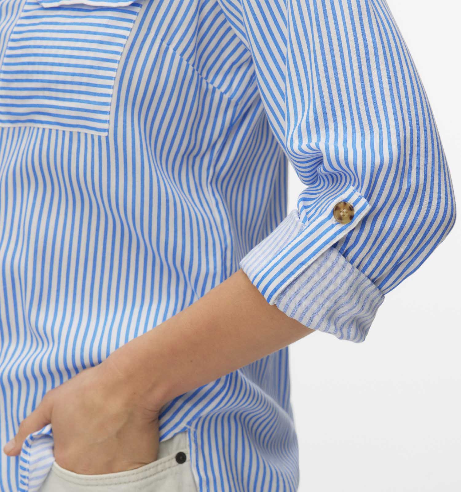 Cette blouse en bleu de la marque tendance Vero Moda sera sans aucun doute votre nouvel article préféré. Une blouse à manches longues convient à toutes les occasions, qu'il s'agisse d'un cadre professionnel, comme au travail, ou d'une soirée agréable entre amies. Cette blouse (MERK) est un vêtement intéressant ! Cette blouse pour femmes en bleu est fabriqué en viscose. Ces matières souples sont agréables sur la peau et assurent un confort optimal.