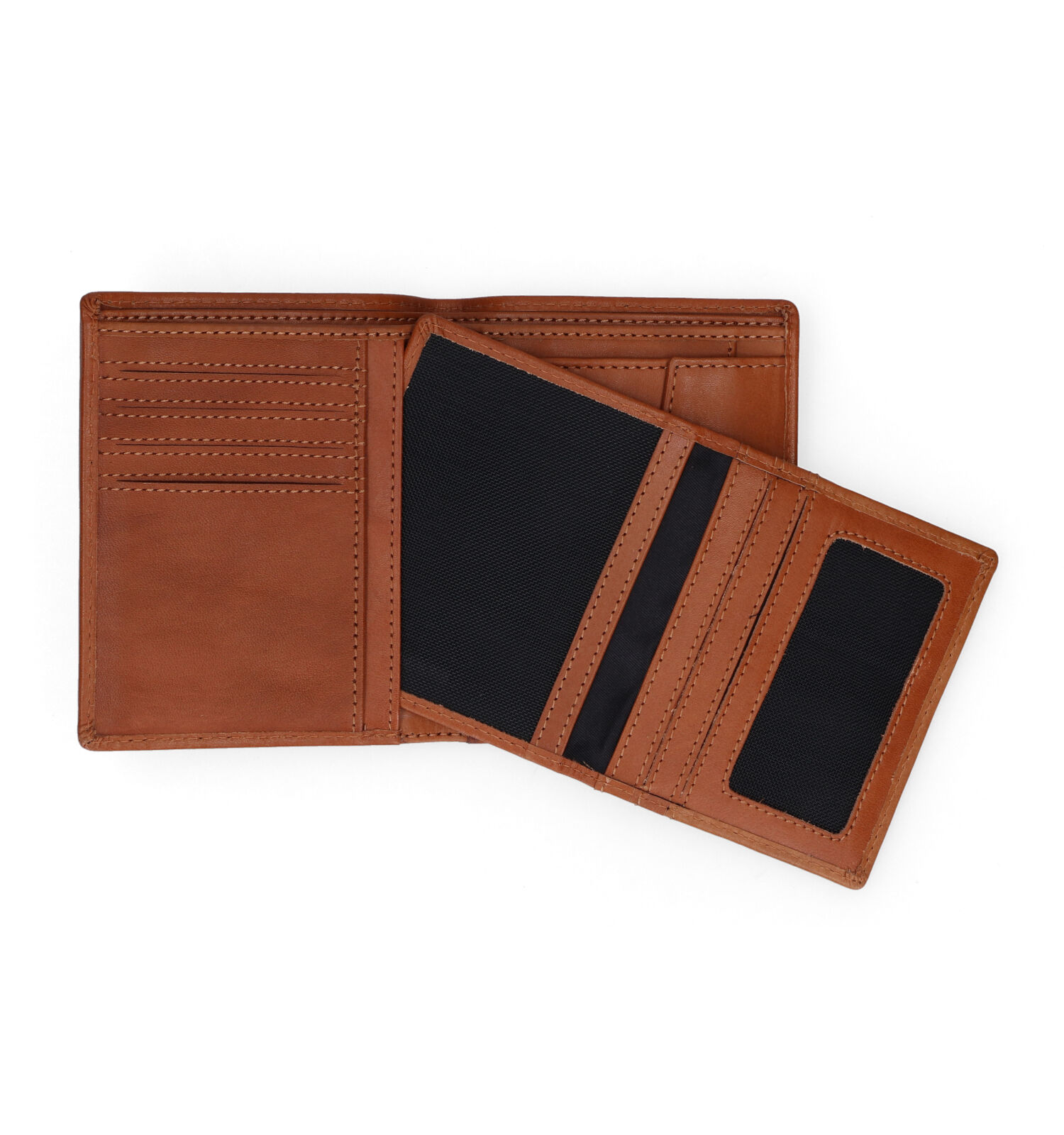Ce portefeuille traditionnel pour hommes de notre nouvelle collection Maverick est l'accessoire parfait pour l'homme moderne. Ce portefeuille pour homme en cognac est sûr, fonctionnel et élégant. Maverick offre ici une qualité supérieure.
