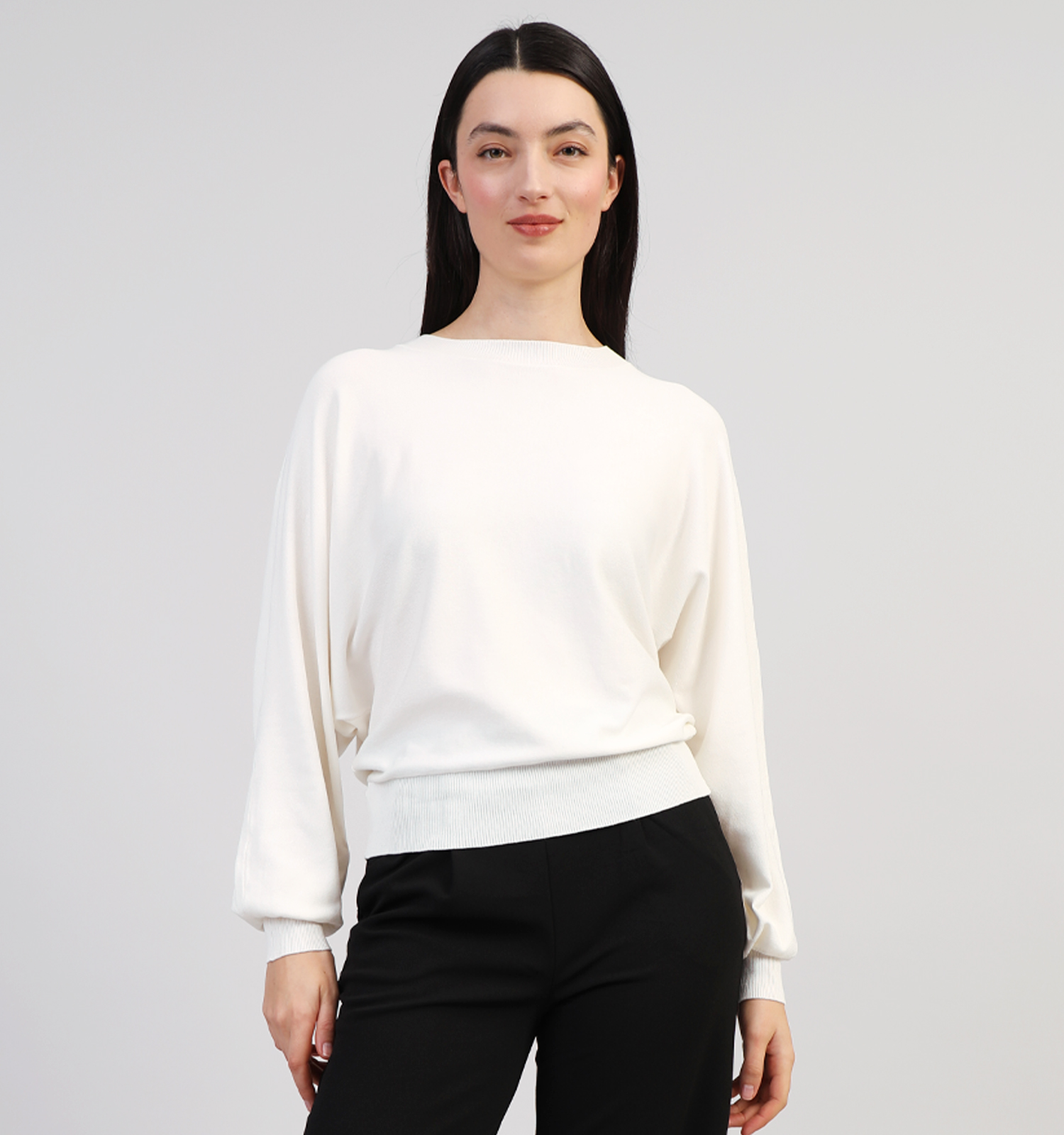 Une autre combinaison tendance est ce pull porté par-dessus une robe. Enfile ta robe préférée et ajoute ensuite une ceinture fine à la hauteur où tu veux que ce pull Minus se termine. C'est une question de goût : ça peut être à ta taille, juste au-dessus des hanches ou quelque part entre les deux. La partie inférieure du pull Minus, tu la glisses derrière la ceinture, et la partie supérieure, tu la fais légèrement blouser. Le résultat ? Tu as l'air encore plus stylée !