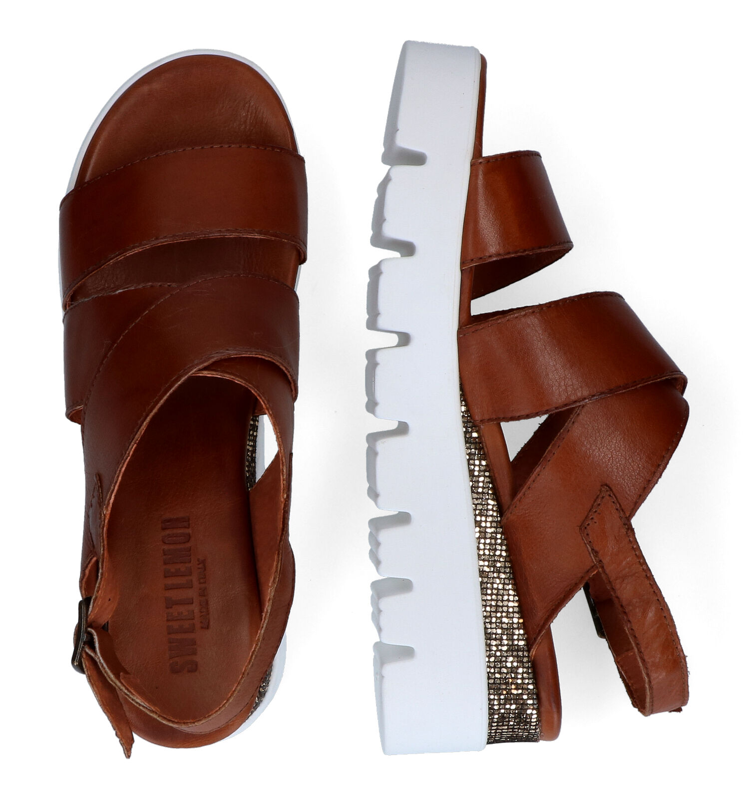 Ce modèle Sweet Lemon a une magnifique couleur cognac qui vous permet d'associer ces sandales compensées à presque tous les looks de votre garde-robe. Les talons compensés se portent le mieux sous les robes, les jupes et les pantalons (jeans) habillés. Et, cerise sur le gâteau, ces sandales de Sweet Lemon allongent visuellement vos jambes. Ces sandales à talon compensé sont fabriquées en cuir de haute qualité, avec des semelles intérieures en cuir.