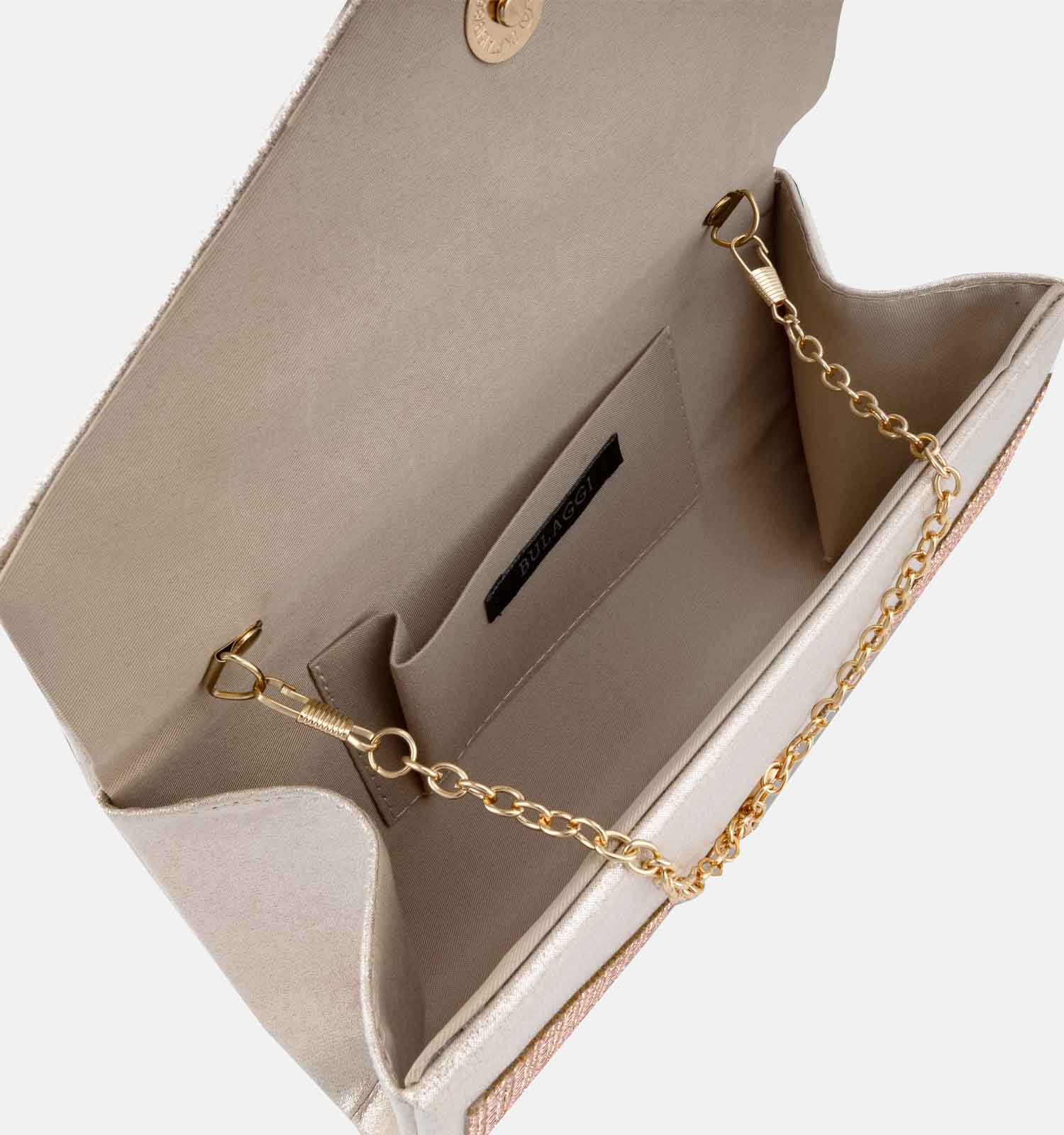 De afmetingen van deze veganistische tas zijn 22 cm op 3 cm. Deze roze tas van Bulaggi is 14 cm hoog. Het perfecte formaat voor feesttassen!