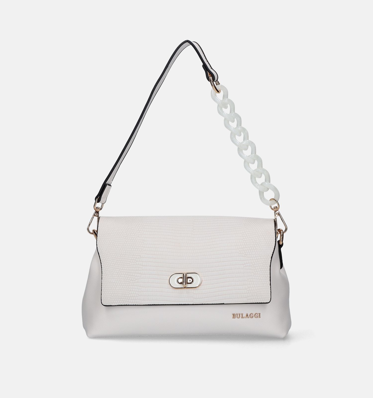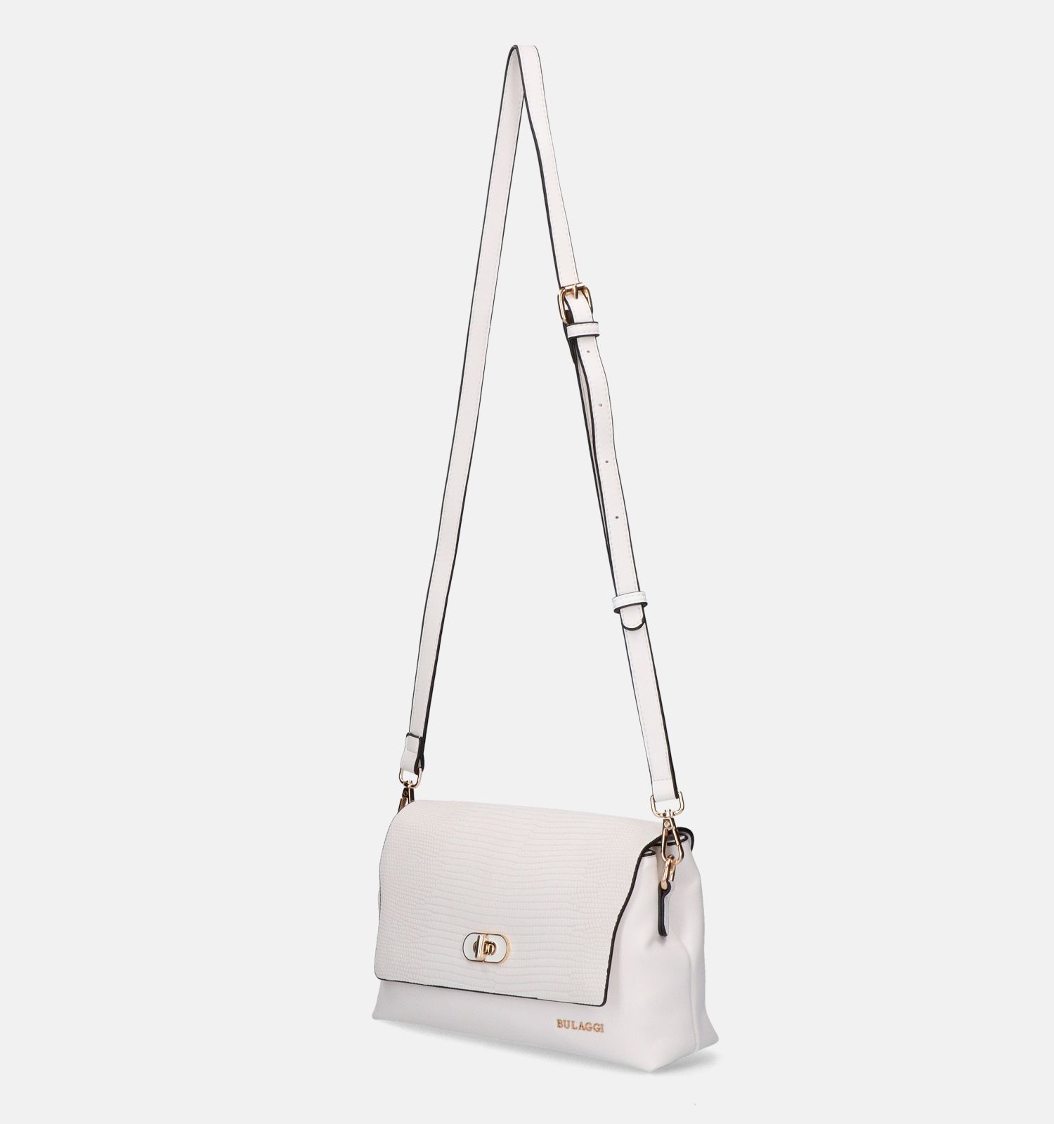 De afmetingen van deze veganistische tas zijn 25 cm op 8 cm. Deze witte tas van Bulaggi is 15 cm hoog. Het perfecte formaat voor schoudertassen!