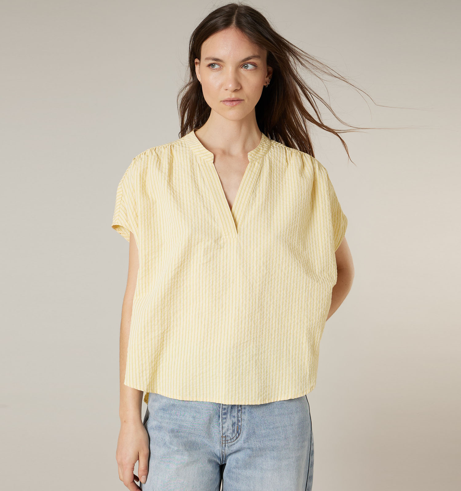 Deze leuke blouse, van het merk Deeluxe Original, maakt van elke simpele outfit instant een absolute winnaar. Deze gele blouse is makkelijk te stylen bovenop jouw favoriete (jeans)broek. Een tip om dit model helemaal tot zijn recht te laten komen: trek je blouse aan en steek ze volledig in jouw broek, om ze vervolgens aan de rand van je broek er lichtjes uit te trekken. Dit geeft je Deeluxe Original blouse wat meer vorm én benadrukt jouw taille! Dat is de perfecte truc om de pasvorm (losvallend) helemaal tot zijn recht te laten komen en jou te laten stralen.
