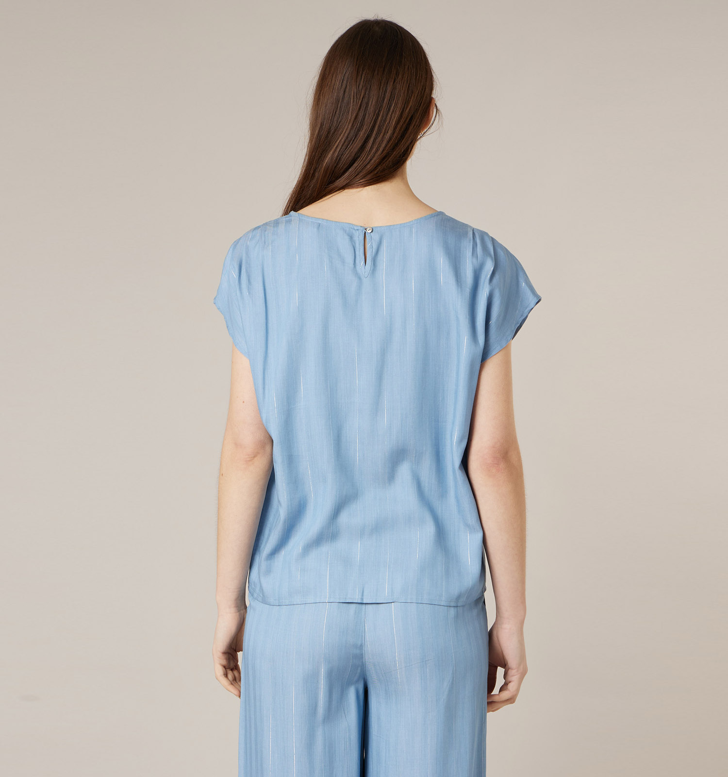 Deze blauwe damesblouse zal ongetwijfeld jouw nieuwe lievelingsblouse worden. Het materiaal voelt zacht aan; dat is gewoon hemels comfortabel! Dit blauwe model is gemaakt van lyocell-tencel, metaalvezel, ideaal voor zachte lentedagen en zomerse avonden. Met de subtiele elegantie van dit Deeluxe Original model, krijgt jouw outfit direct een tijdloze upgrade!