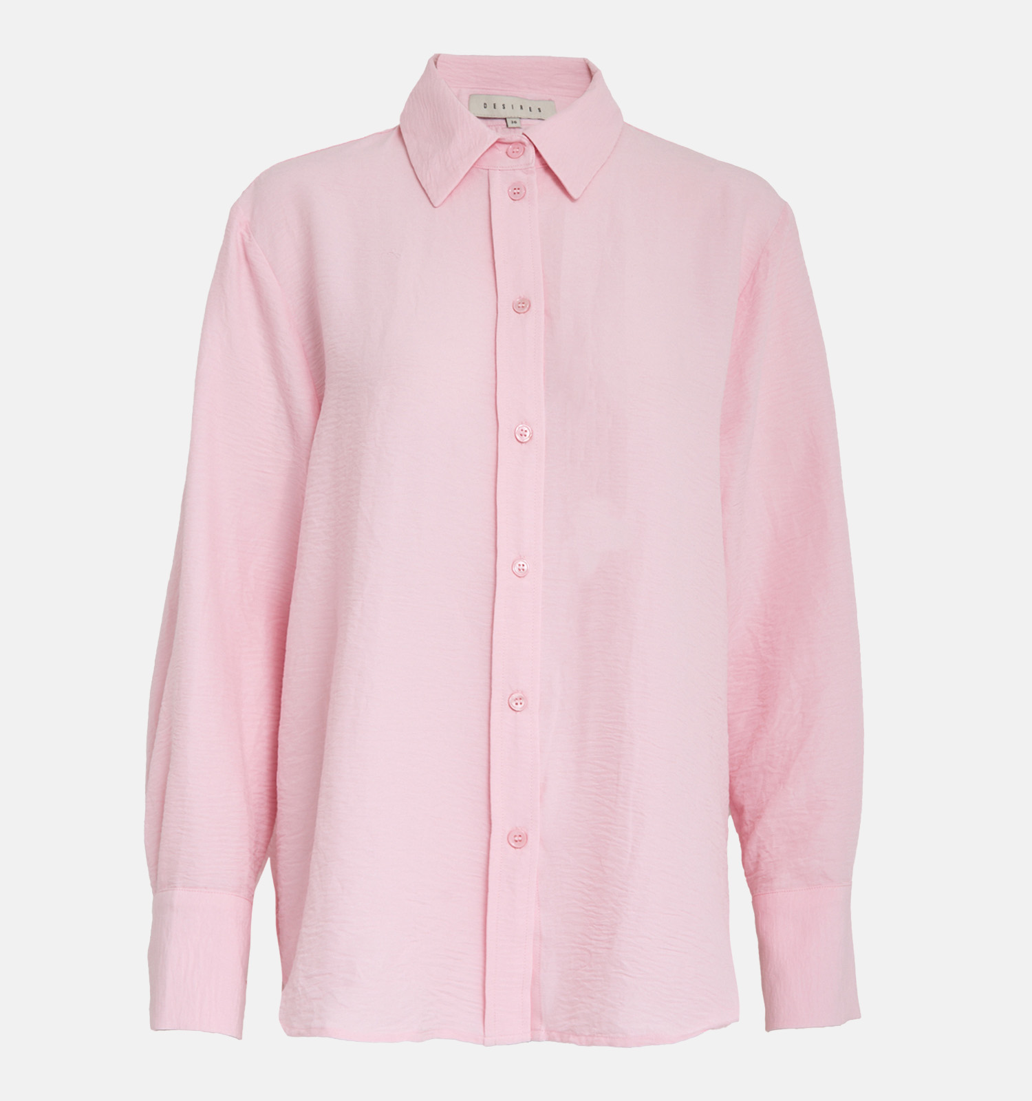 Een dameshemd is een leuk fashion item om in jouw kast te hebben! Een hemd zoals dit roze exemplaar van het merk Desires is door de veelzijdigheid aan stylingopties een dankbaar kledingstuk. Je kan het klassiek dragen in formele(re) omgevingen. Laat je alle knopen van dit roze hemd open, dan kan je het gebruiken als vervanging voor een vest, bovenop een t-shirt of top. Je kan de onderste knopen onderaan dit Desires dameshemd open laten en de twee kanten onderaan in een knoop of strik verwerken, als je bijvoorbeeld naar het strand gaat.