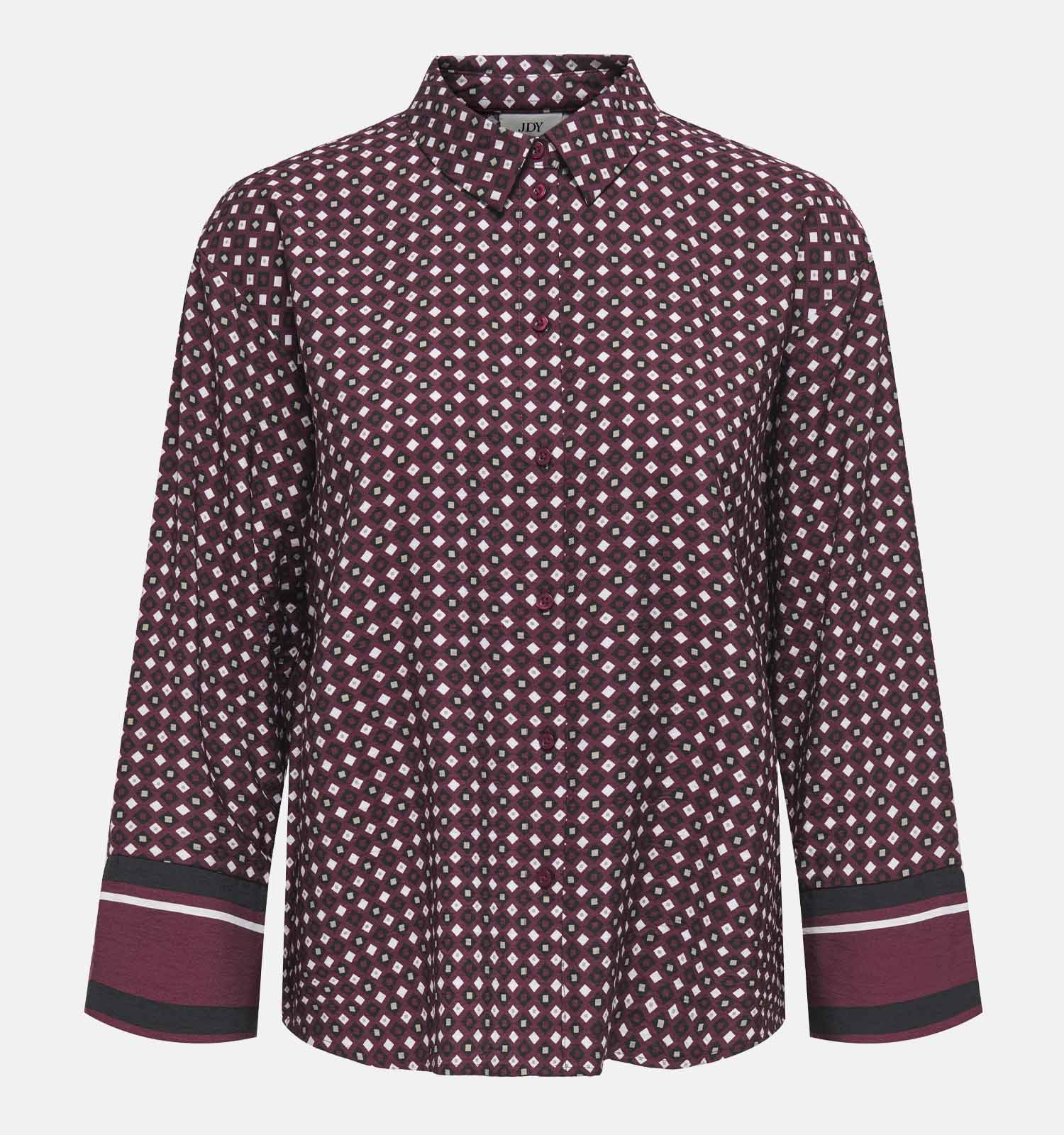 Deze bordeaux blouse van het trendy merk JDY wordt ongetwijfeld jouw nieuwe favoriete item. Een blouse met lange mouwen is geschikt voor elke gelegenheid, van professionele settings zoals op jouw werk, tot gezellige date nights met jouw vriendinnen. Deze JDY blouse met lange mouwen is een dankbaar kledingstuk! Deze bordeaux damesblouse is vervaardigd uit nylon, viscose. Dit zachte materiaal voelt aangenaam op jouw huid en zorgt voor topcomfort.
