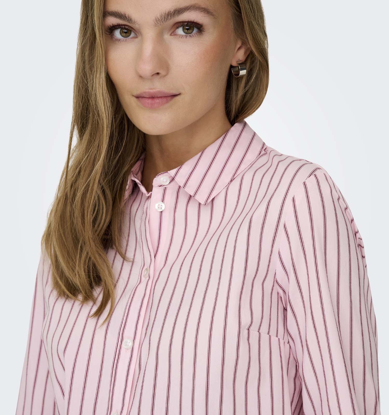 Een dameshemd is een leuk fashion item om in jouw kast te hebben! Een hemd zoals dit roze exemplaar van het merk JDY is door de veelzijdigheid aan stylingopties een dankbaar kledingstuk. Je kan het klassiek dragen in formele(re) omgevingen. Laat je alle knopen van dit roze hemd open, dan kan je het gebruiken als vervanging voor een vest, bovenop een t-shirt of top. Je kan de onderste knopen onderaan dit JDY dameshemd open laten en de twee kanten onderaan in een knoop of strik verwerken, als je bijvoorbeeld naar het strand gaat.