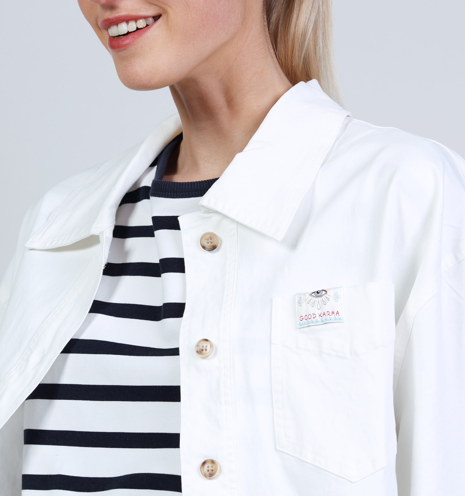 Een dameshemd is een leuk fashion item om in jouw kast te hebben! Een hemd zoals dit witte exemplaar van het merk Orfeo is door de veelzijdigheid aan stylingopties een dankbaar kledingstuk. Je kan het klassiek dragen in formele(re) omgevingen. Laat je alle knopen van dit witte hemd open, dan kan je het gebruiken als vervanging voor een vest, bovenop een t-shirt of top. Je kan de onderste knopen onderaan dit Orfeo dameshemd open laten en de twee kanten onderaan in een knoop of strik verwerken, als je bijvoorbeeld naar het strand gaat.
