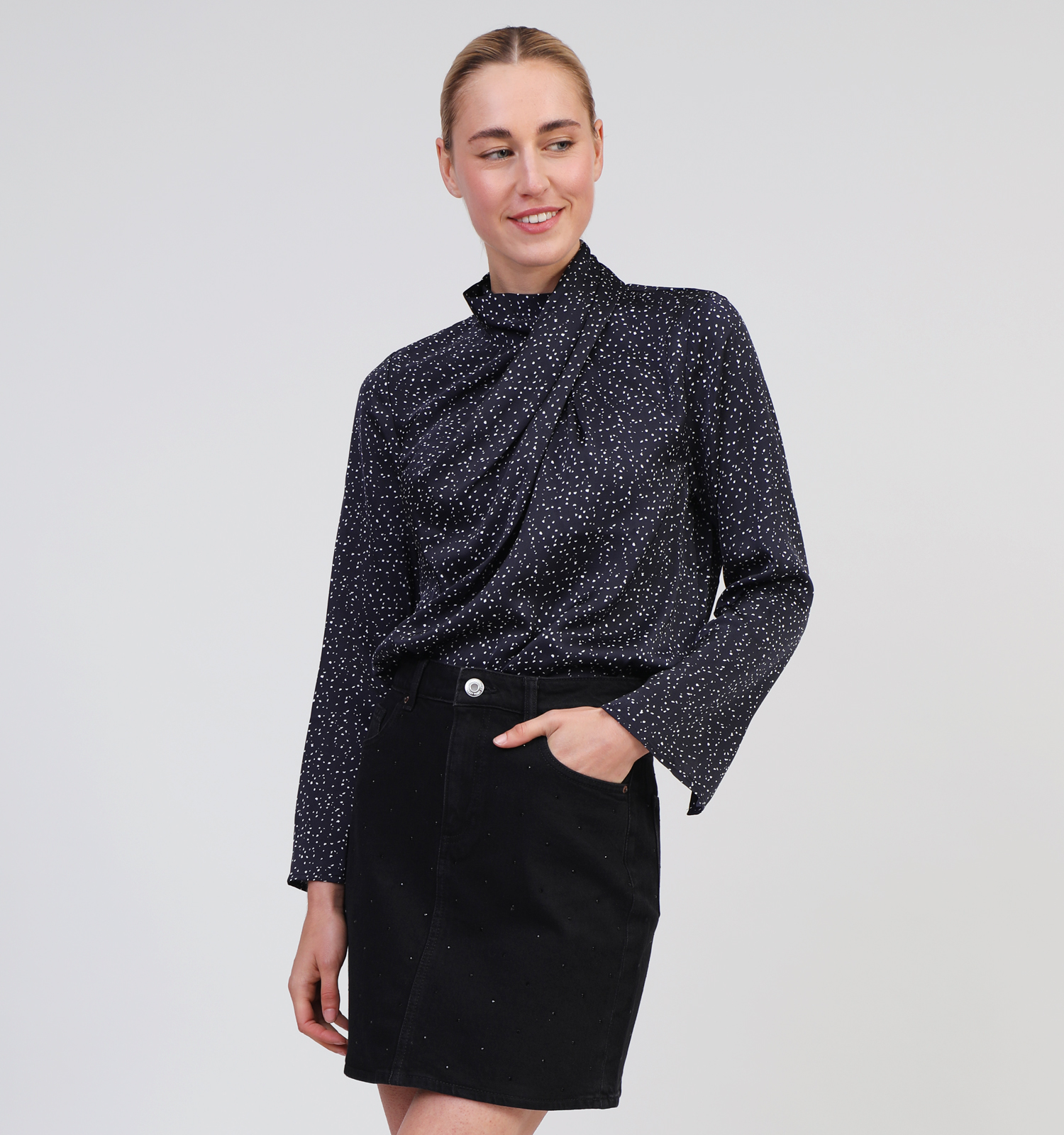 Style deze blouse van JDY door ze in jouw lievelingsjeans te steken en te combineren met een leuke riem. Je kan ze ook dragen bovenop je favoriete chinobroek, rok of short! Een stylingtip: steek deze blouse in jouw (jeans)broek en doe vervolgens je armen even omhoog. Zo krijg je een natuurlijk losvallend effect! Oh, en je look wordt nog verfijnder als je kiest voor schoenen of een tas in dezelfde donkerblauw kleur als deze damesblouse.