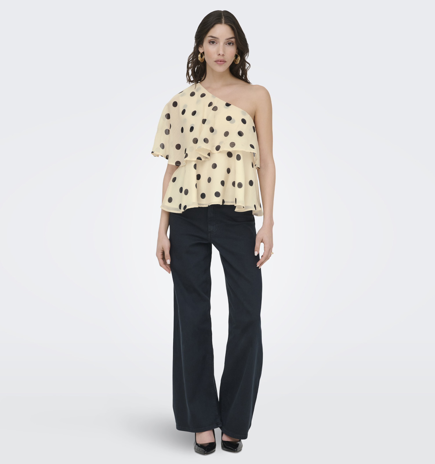 JDY Fay Life One-Shoulder Polkadot Lichtbeige/Zwarte Top