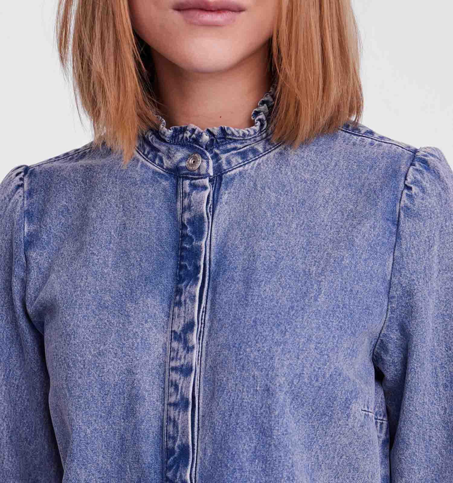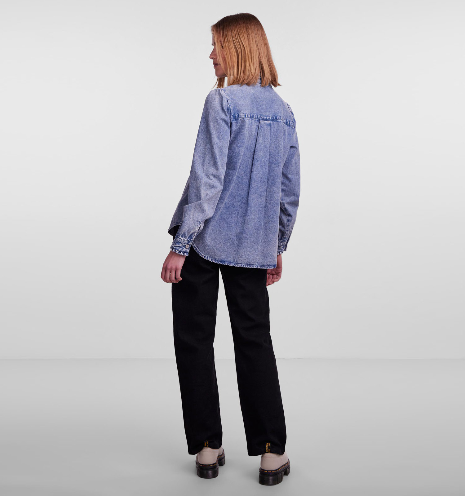 Een dameshemd is een leuk fashion item om in jouw kast te hebben! Een hemd zoals dit blauwe exemplaar van het merk Pieces is door de veelzijdigheid aan stylingopties een dankbaar kledingstuk. Je kan het klassiek dragen in formele(re) omgevingen. Laat je alle knopen van dit blauwe hemd open, dan kan je het gebruiken als vervanging voor een vest, bovenop een t-shirt of top. Je kan de onderste knopen onderaan dit Pieces dameshemd open laten en de twee kanten onderaan in een knoop of strik verwerken, als je bijvoorbeeld naar het strand gaat.