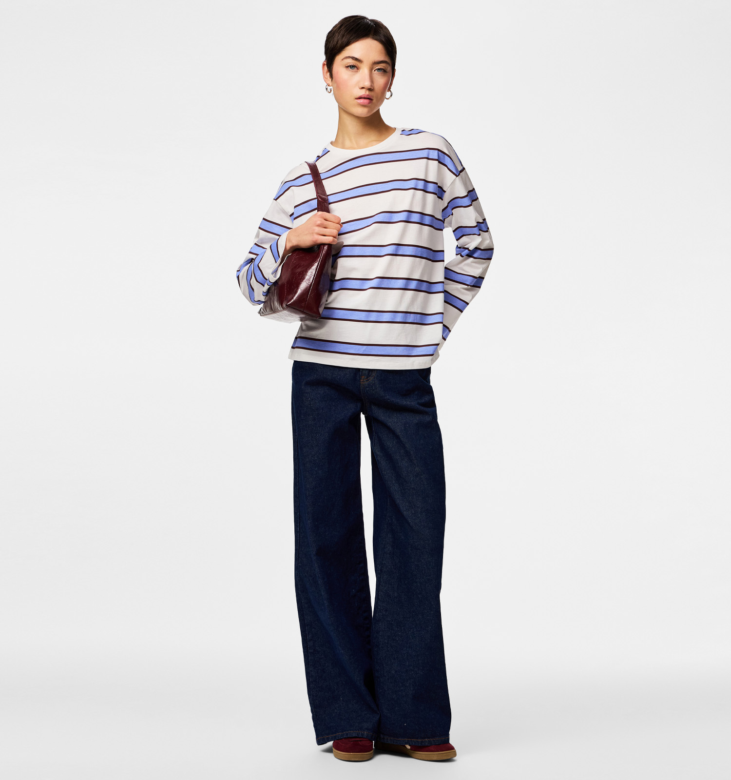 Deze T-shirt heeft lange mouwen, waardoor je het hele jaar door van dit fijne exemplaar kan genieten! Ook interessant om te weten: dit Pieces-model valt recht qua pasvorm. Het staat dus ieder lichaamstype prachtig. Deze blauwe dames-T-shirt heeft een mooie ronde hals die je eventueel prachtig kan accentueren met je favoriete kettingen.