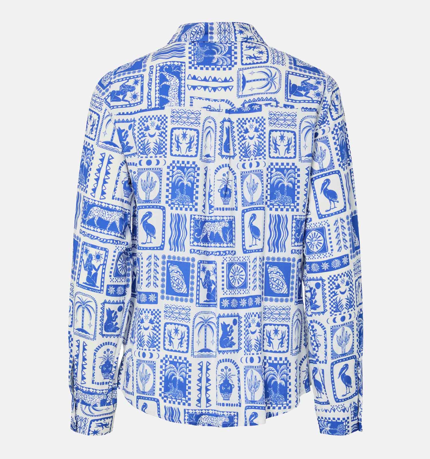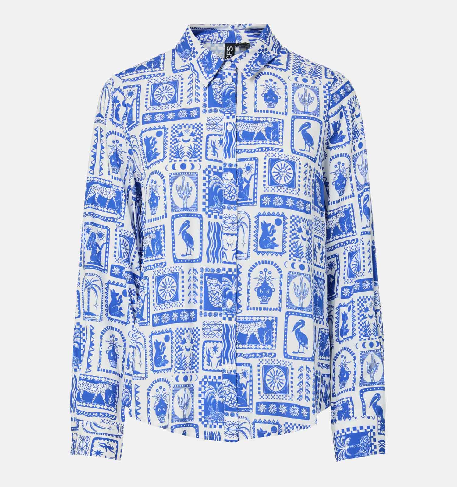 Pieces Saylor Blue Tile Witte/Blauwe Hemd