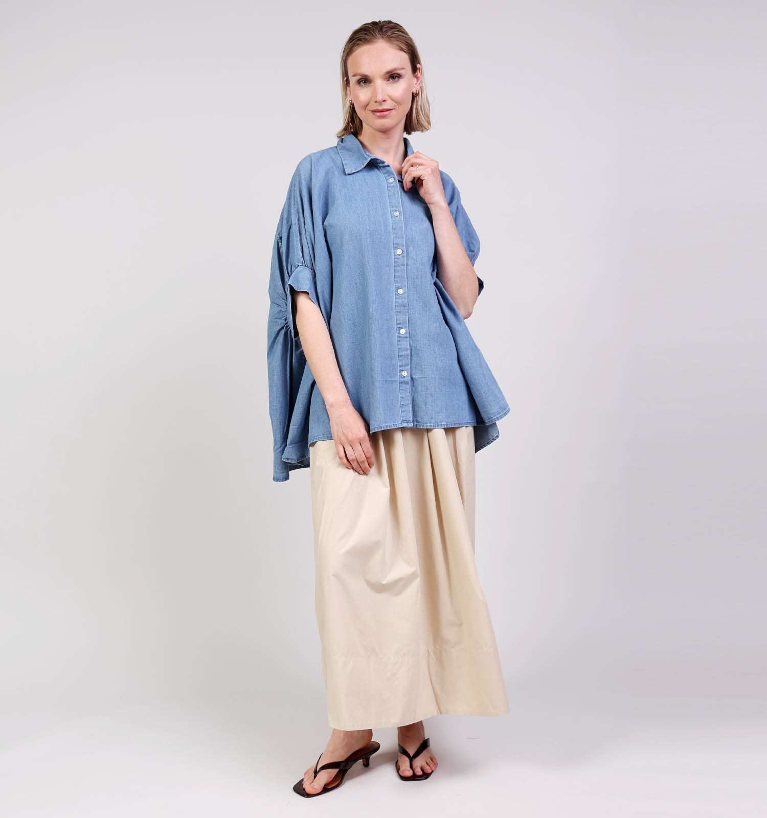 Een dameshemd is een leuk fashion item om in jouw kast te hebben! Een hemd zoals dit blauwe exemplaar van het merk Rue Mazarine is door de veelzijdigheid aan stylingopties een dankbaar kledingstuk. Je kan het klassiek dragen in formele(re) omgevingen. Laat je alle knopen van dit blauwe hemd open, dan kan je het gebruiken als vervanging voor een vest, bovenop een t-shirt of top. Je kan de onderste knopen onderaan dit Rue Mazarine dameshemd open laten en de twee kanten onderaan in een knoop of strik verwerken, als je bijvoorbeeld naar het strand gaat.