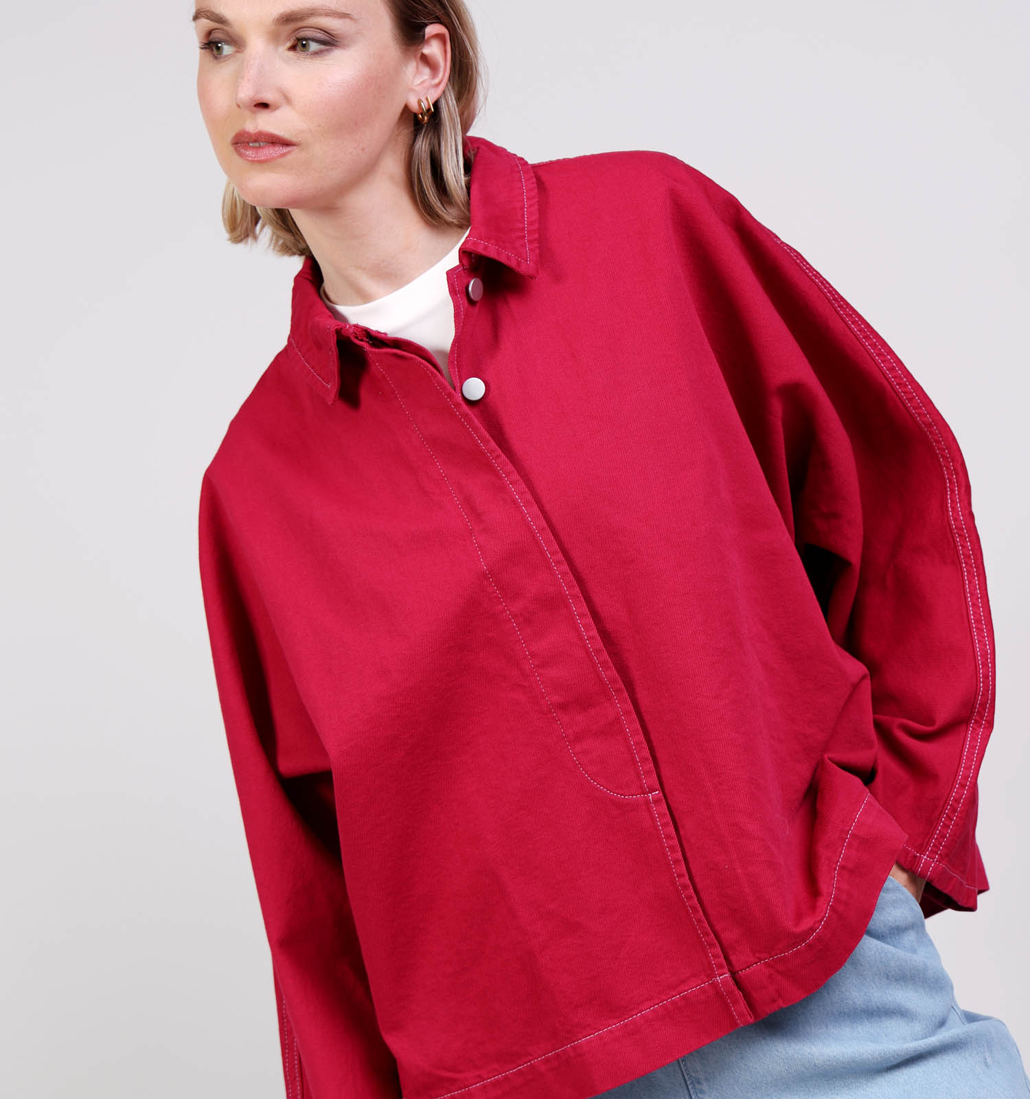 Een dameshemd is een leuk fashion item om in jouw kast te hebben! Een hemd zoals dit rode exemplaar van het merk Vila is door de veelzijdigheid aan stylingopties een dankbaar kledingstuk. Je kan het klassiek dragen in formele(re) omgevingen. Laat je alle knopen van dit rode hemd open, dan kan je het gebruiken als vervanging voor een vest, bovenop een t-shirt of top. Je kan de onderste knopen onderaan dit Vila dameshemd open laten en de twee kanten onderaan in een knoop of strik verwerken, als je bijvoorbeeld naar het strand gaat.