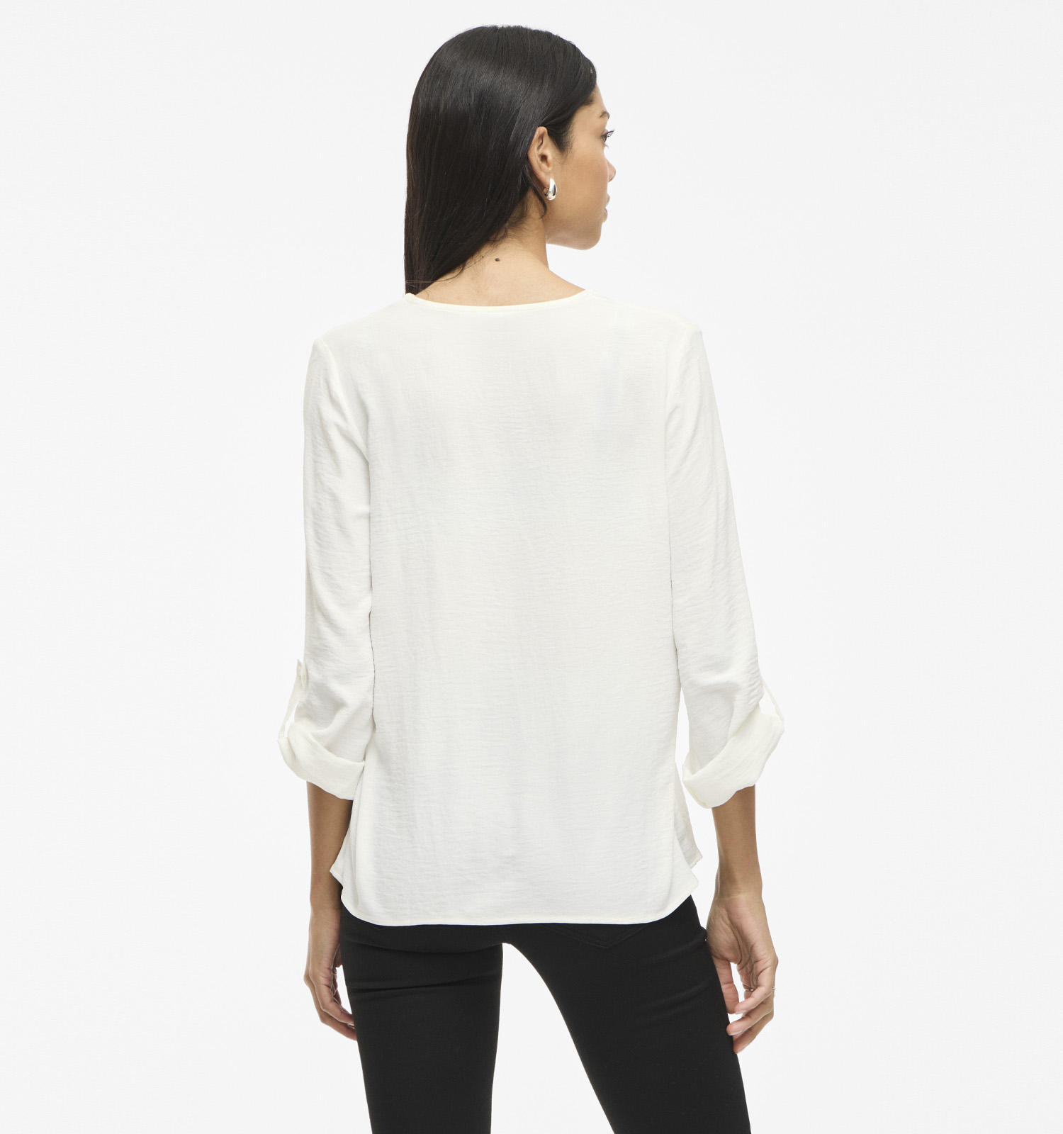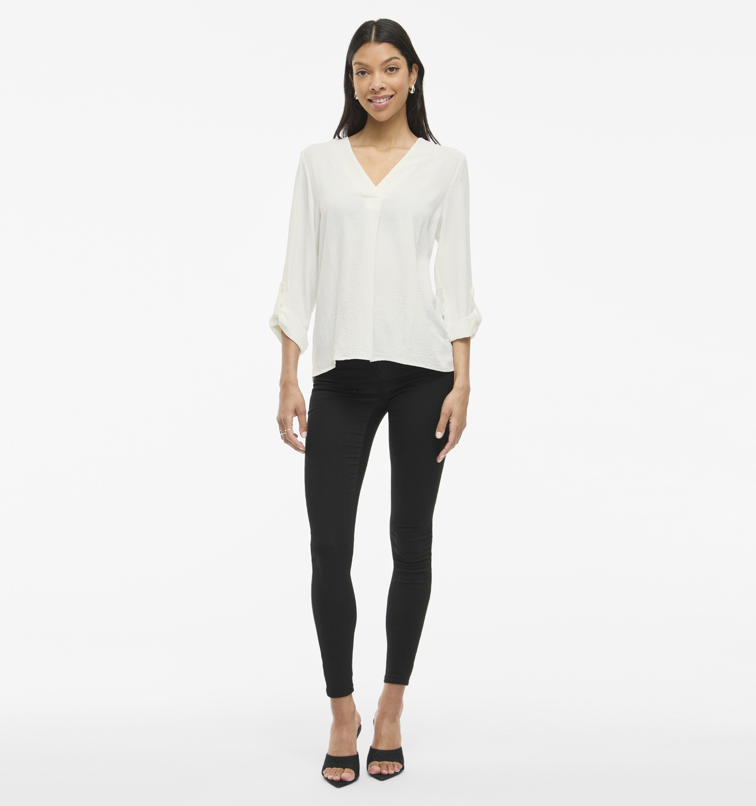 Deze witte blouse van het trendy merk Vila wordt ongetwijfeld jouw nieuwe favoriete item. Een blouse met lange mouwen is geschikt voor elke gelegenheid, van professionele settings zoals op jouw werk, tot gezellige date nights met jouw vriendinnen. Deze Vila blouse met lange mouwen is een dankbaar kledingstuk! Deze witte damesblouse is vervaardigd uit polyester. Dit zachte materiaal voelt aangenaam op jouw huid en zorgt voor topcomfort.