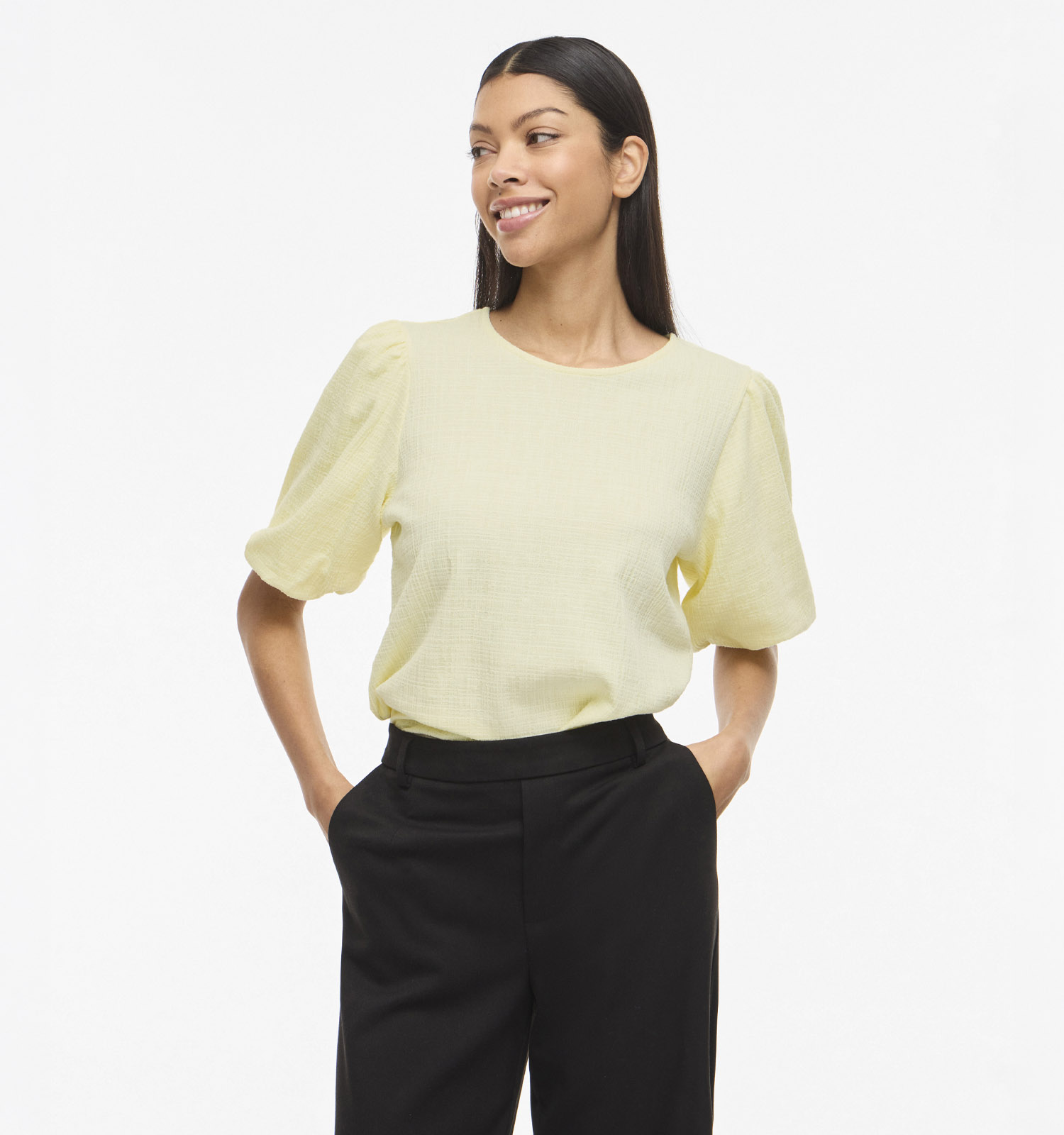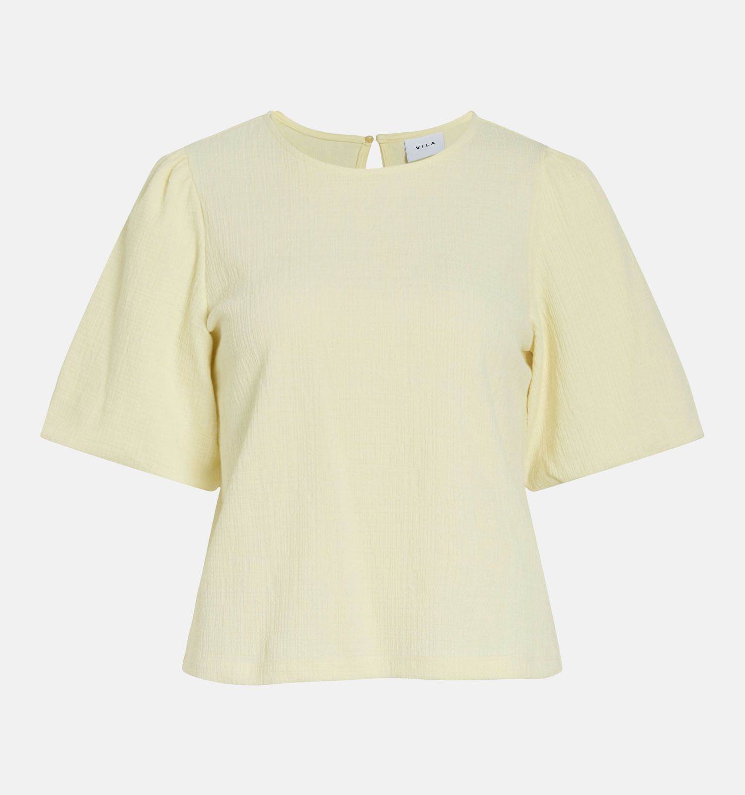 Deze gele damesblouse zal ongetwijfeld jouw nieuwe lievelingsblouse worden. Het materiaal voelt zacht aan; dat is gewoon hemels comfortabel! Dit gele model is gemaakt van elastaan, katoen, polyester, ideaal voor zachte lentedagen en zomerse avonden. Met de subtiele elegantie van dit Vila model, krijgt jouw outfit direct een tijdloze upgrade!