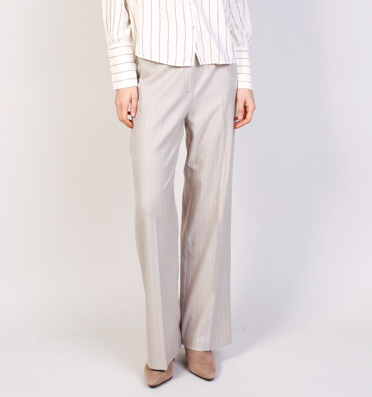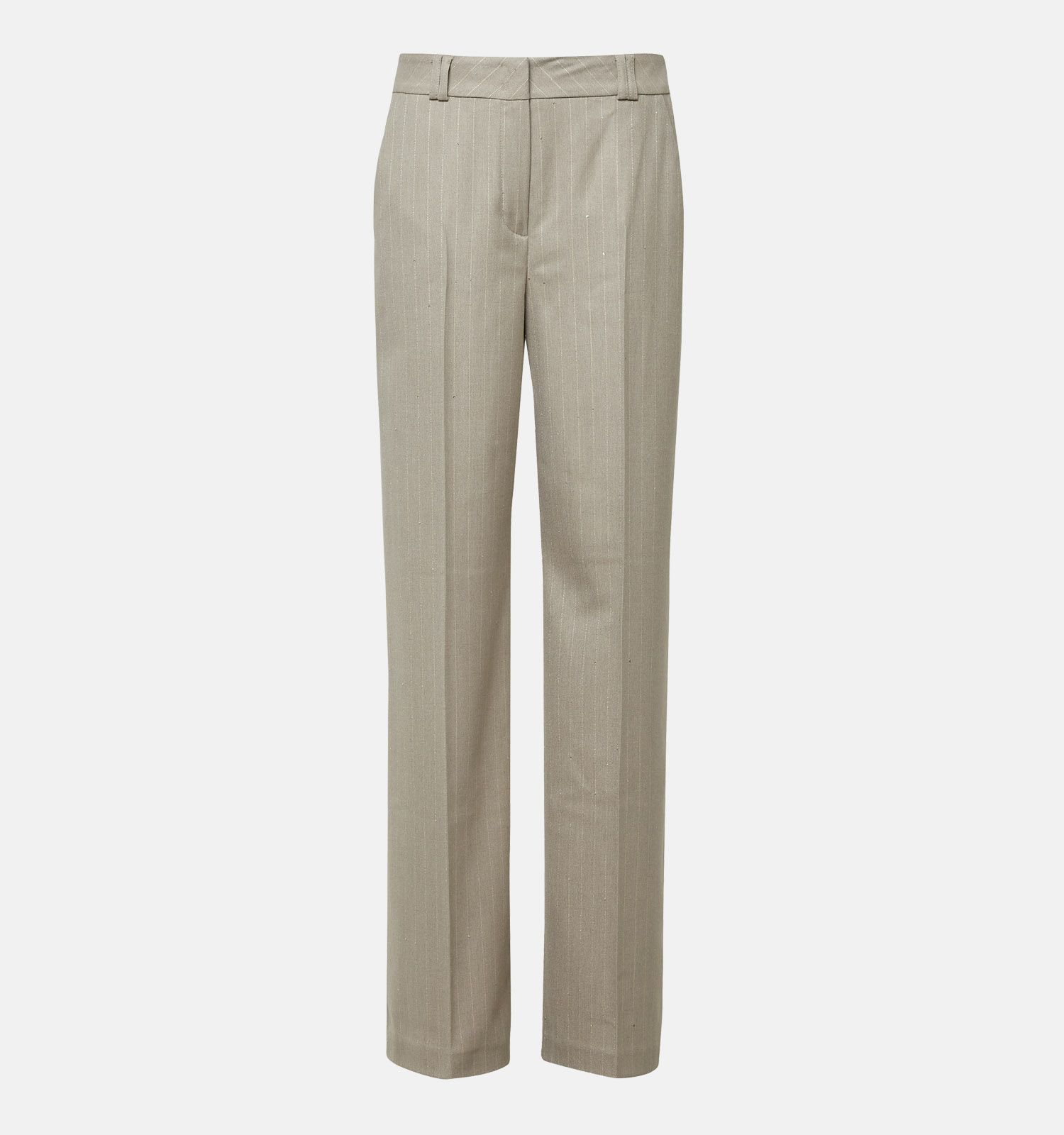 Deze geklede damesbroek heeft een mid-rise taillehoogte, en valt recht qua pasvorm.