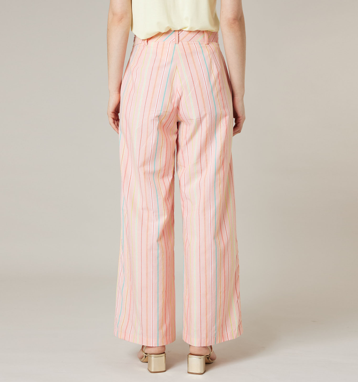 Deze trendy damesbroek heeft een taille en valt recht qua pasvorm, wat het een universeel flatterend model maakt.