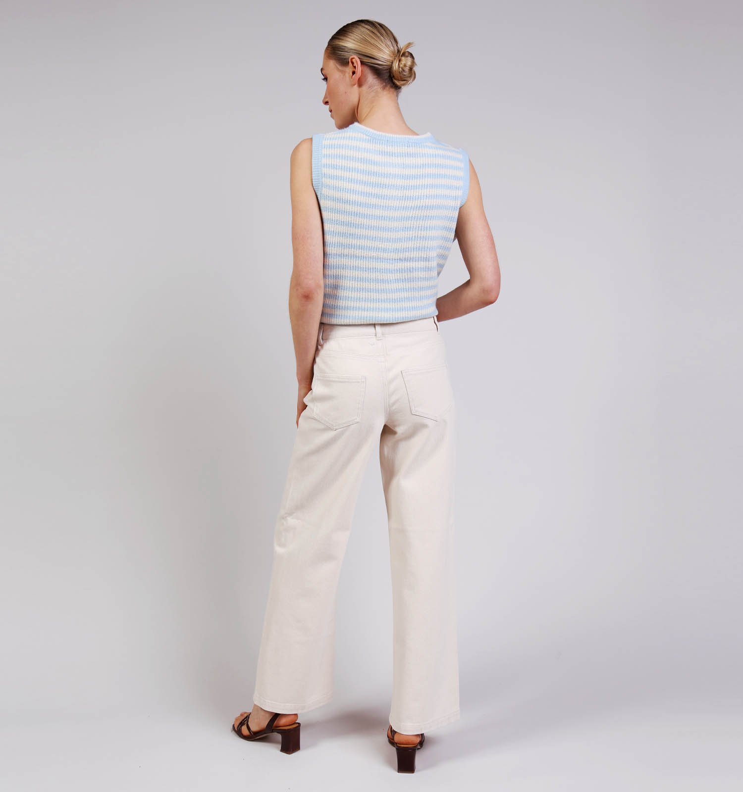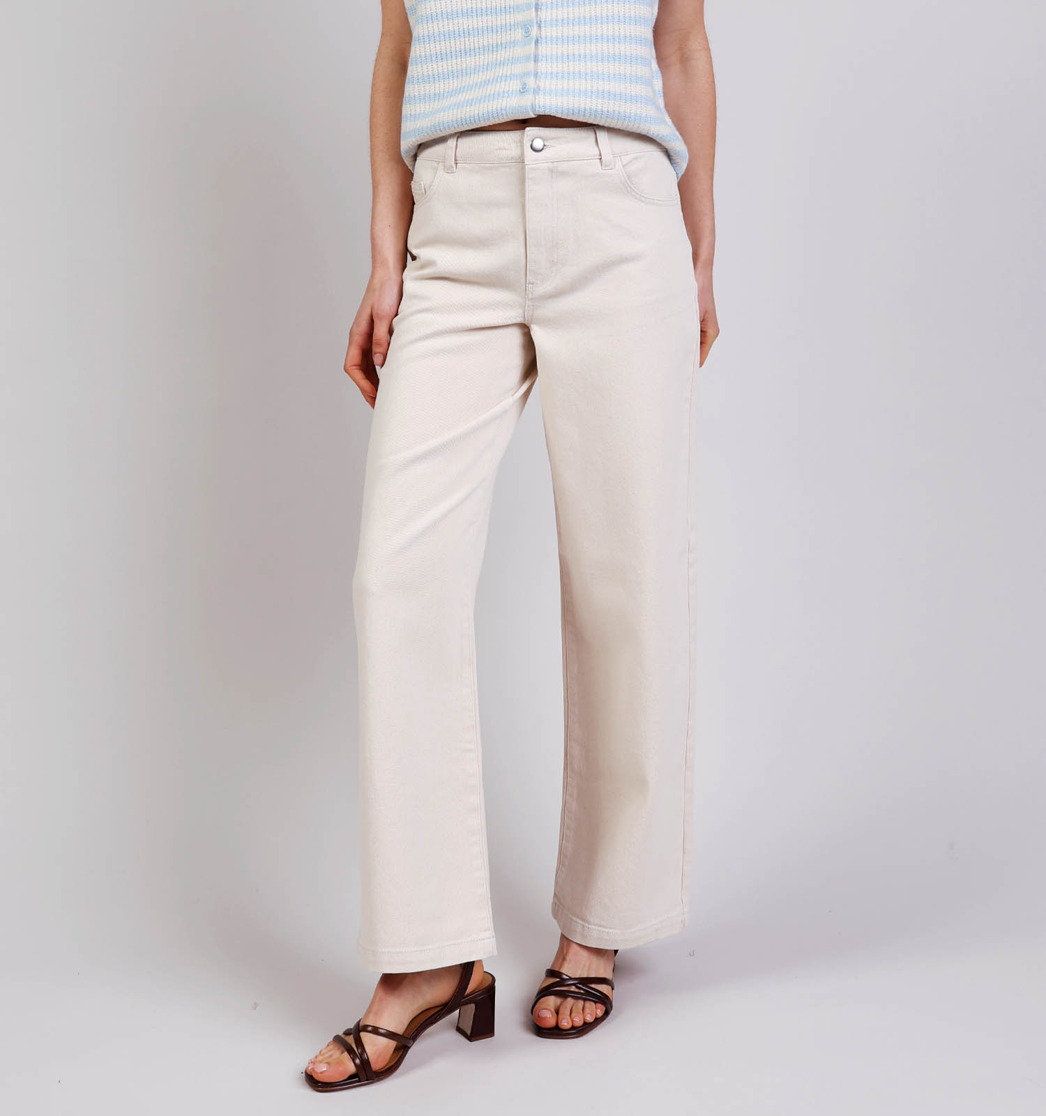 Maak je look compleet met minimalistische, witte sneakers of je favoriete pumps.