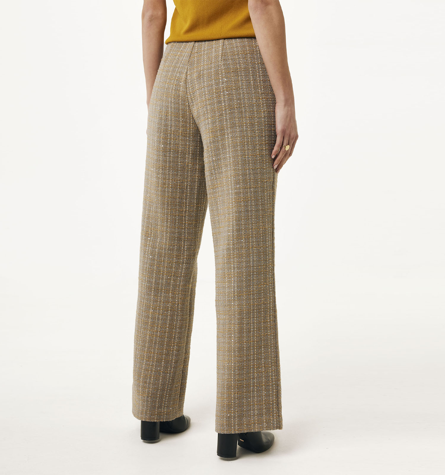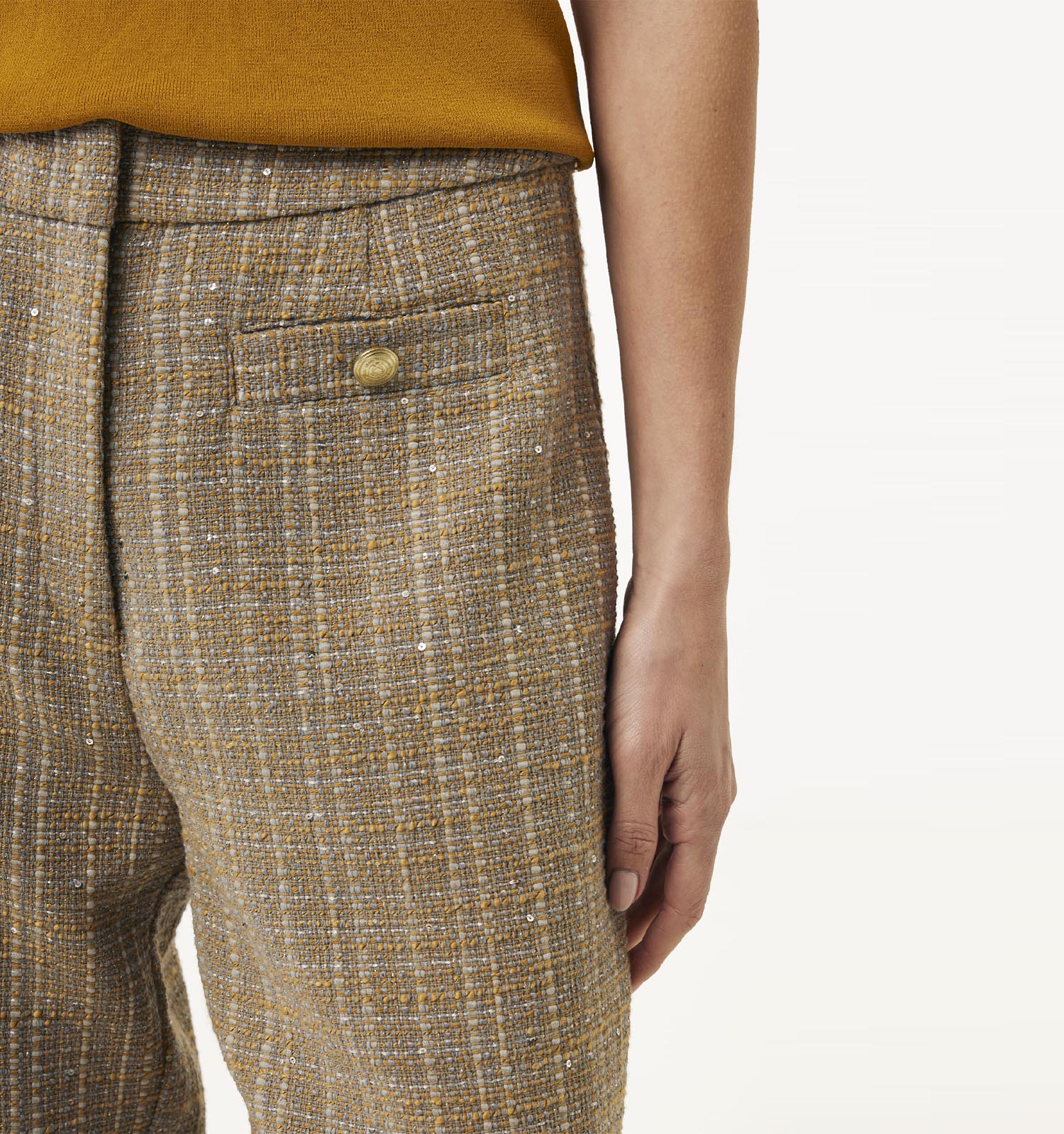 Deze geklede damesbroek heeft een mid-rise taillehoogte, en valt recht qua pasvorm.