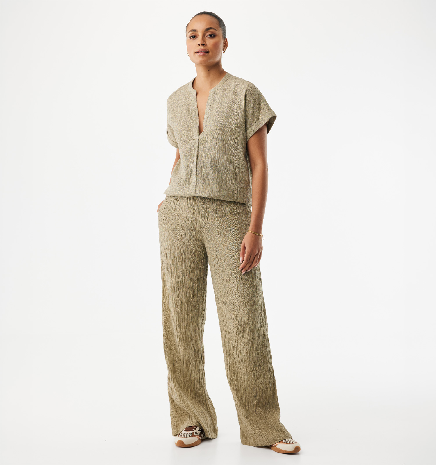 Deze 90s trend is er om te blijven deze keer! Wijde broeken zijn al een aantal modeseizoenen een vaste waarde op de catwalk. Met deze Mexx broek met bredere pijpen ben je dan ook volledig on-trend. De Parisian-chic uitstraling van deze gouden broek van Mexx zorgt ervoor dat je deze kan stylen naar wens. Een nette blouse en een paar pumps maakt ze ideaal voor het werk of voor een feest; een t-shirt met grafische print en een paar minimalistische sneakers zorgen voor een meer casual look, perfect voor in jouw vrije tijd.