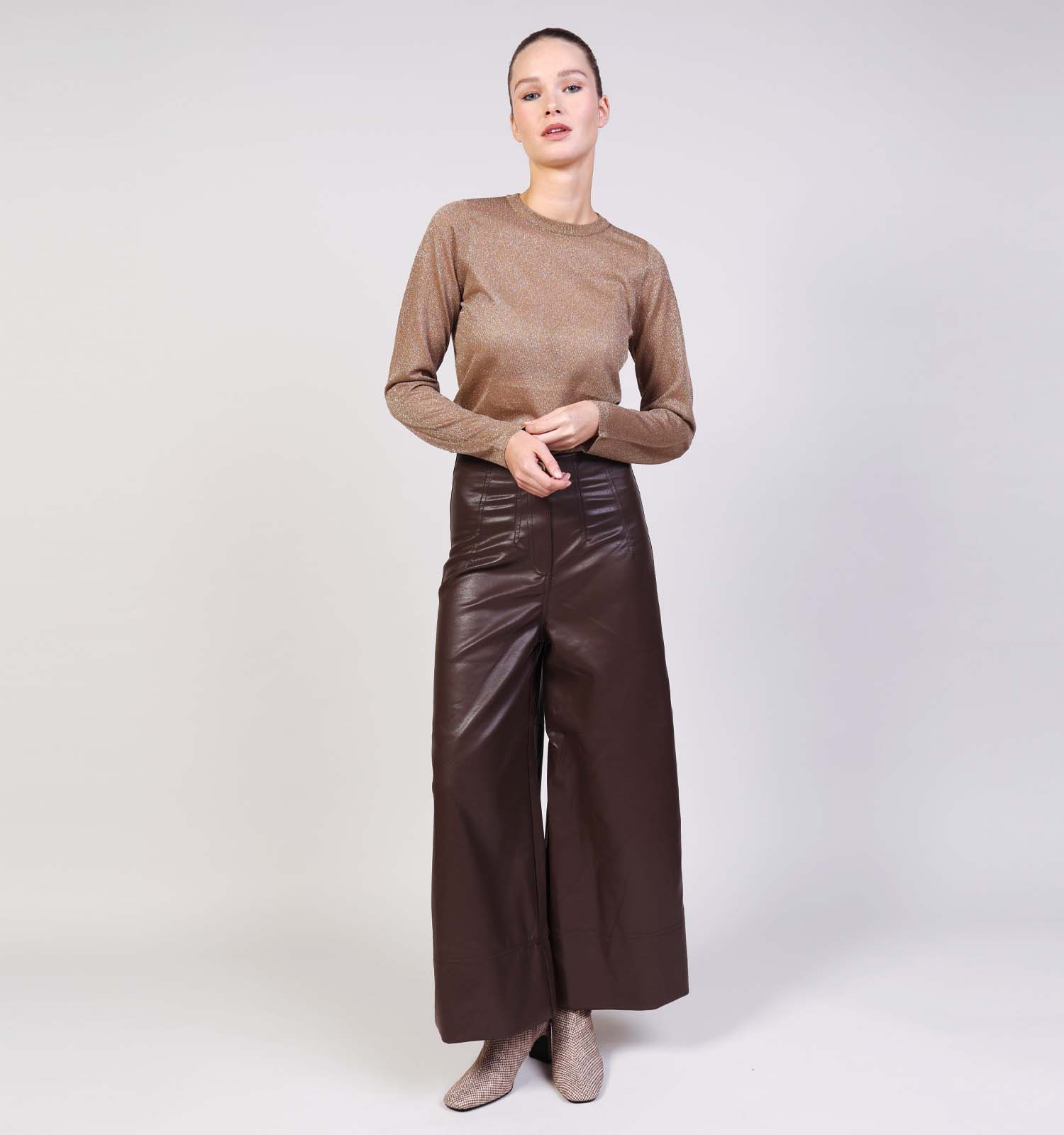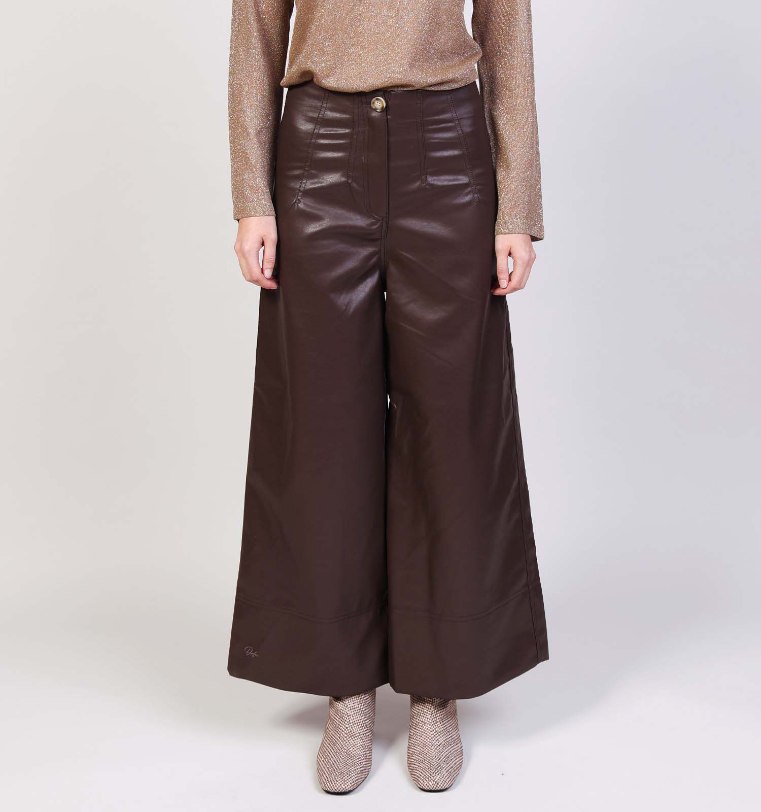 Deze 90s trend is er om te blijven deze keer! Wijde broeken zijn al een aantal modeseizoenen een vaste waarde op de catwalk. Met deze Orfeo broek met bredere pijpen ben je dan ook volledig on-trend. De Parisian-chic uitstraling van deze bruine broek van Orfeo zorgt ervoor dat je deze kan stylen naar wens. Een nette blouse en een paar pumps maakt ze ideaal voor het werk of voor een feest; een t-shirt met grafische print en een paar minimalistische sneakers zorgen voor een meer casual look, perfect voor in jouw vrije tijd.