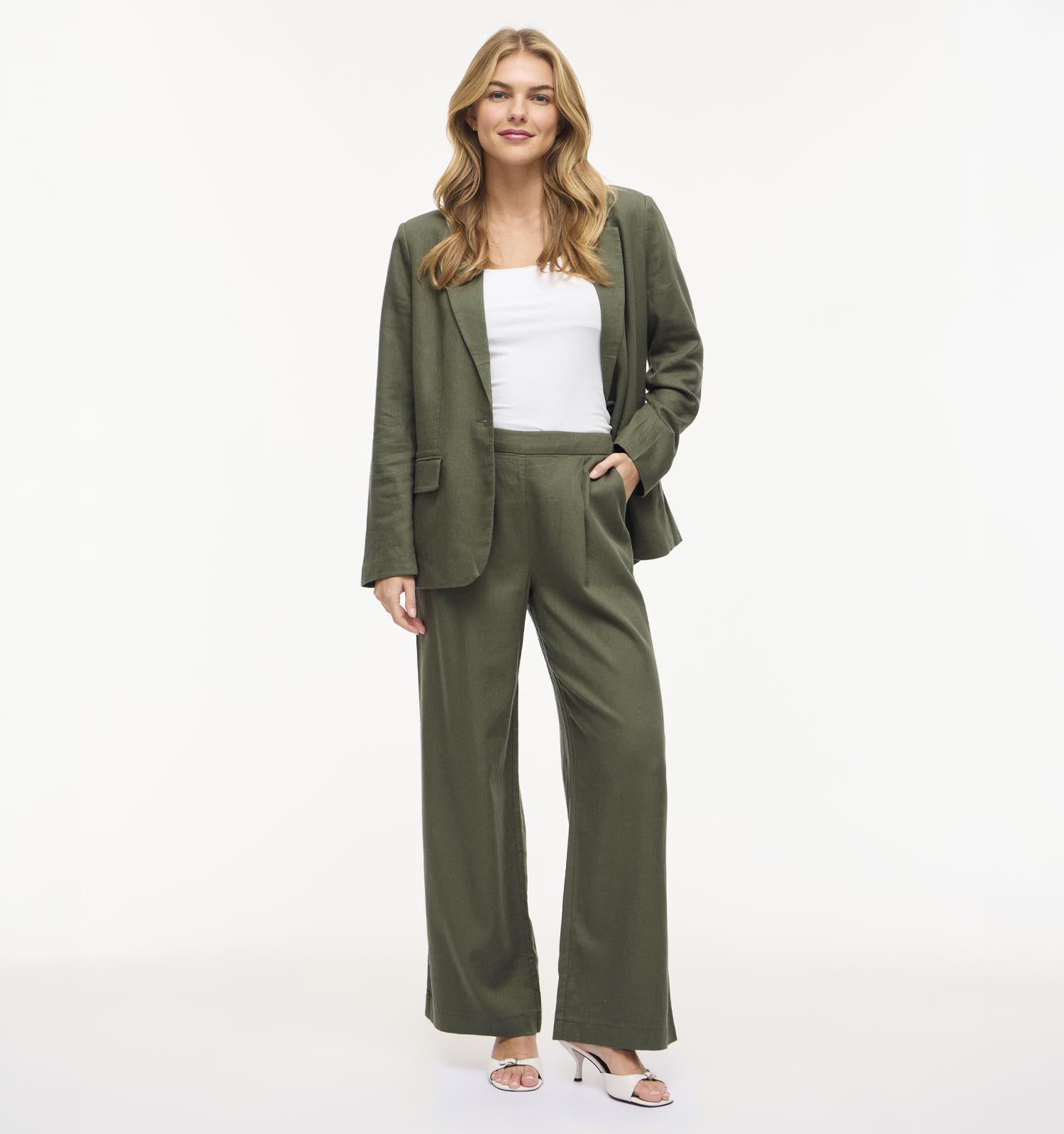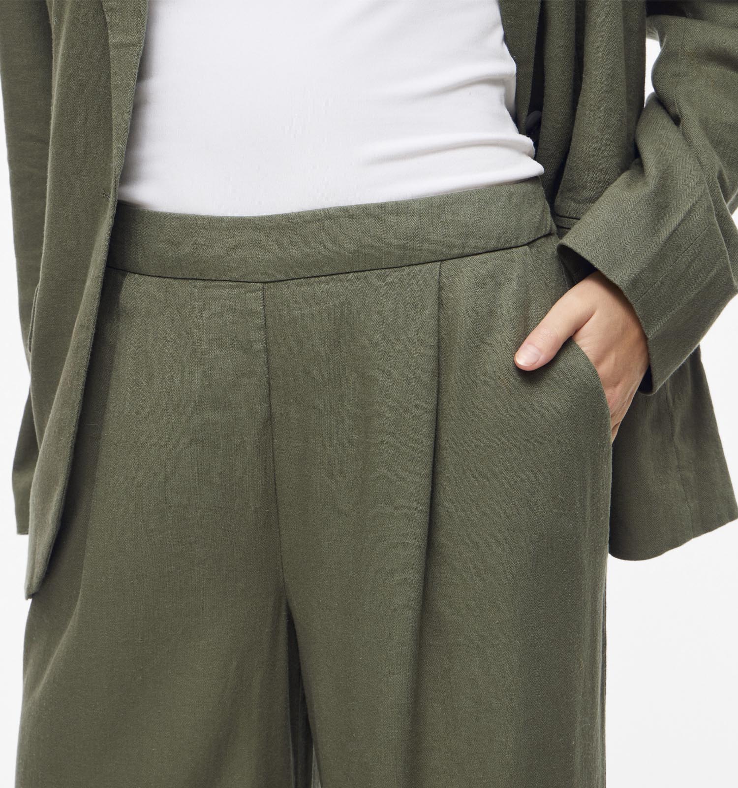 Vila Jolanda Linen Blend Groene Broek