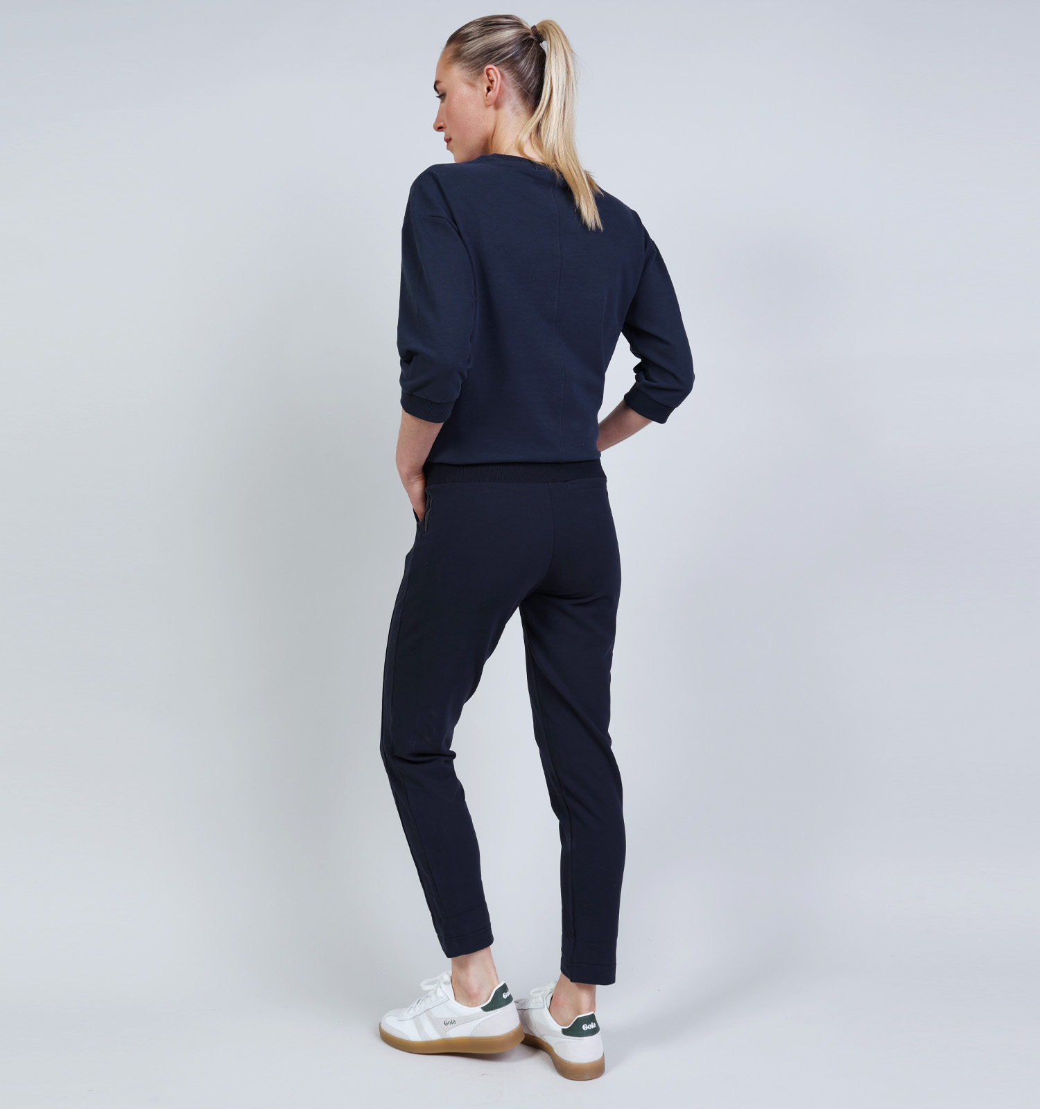 Houd je nieuwe damesjoggingsbroek van Elsband langer in topconditie: volg de wasvoorschriften op het etiket en was hem binnenstebuiten, zodat hij er het langst gloednieuw uitziet. Deze blauwe jogging is gemaakt van zijdezacht maar stevig elastaan, katoen. Comfortabel genoeg om in te chillen, sterk genoeg om in te bewegen.