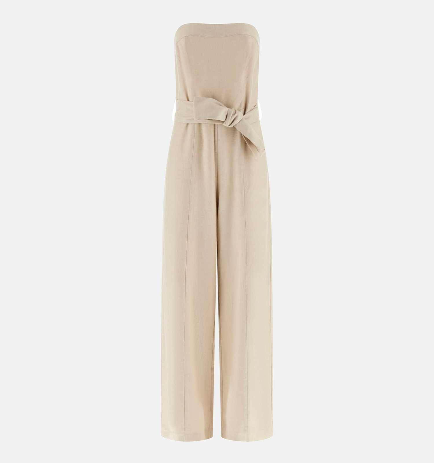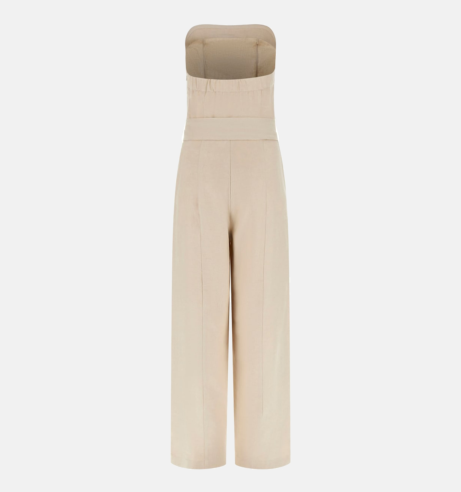 Deze beige one-piece van het merk Guess valt aansluitend qua pasvorm. Het heeft geen mouwen. Style deze one-piece van Guess on-trend met witte sneakers, loafers of mocassins.
