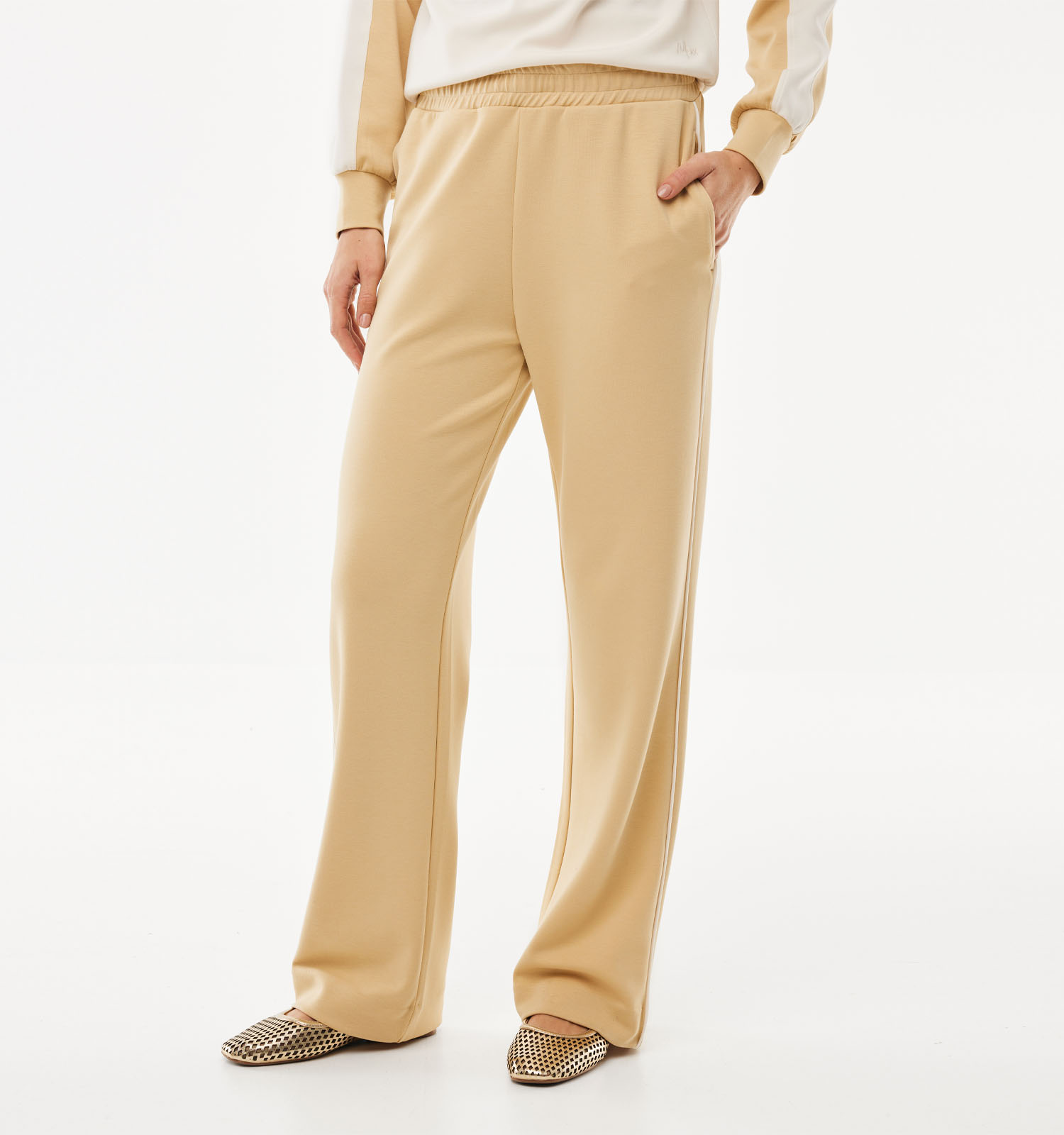 Deze trendy damesbroek heeft een mid-rise taille en valt recht qua pasvorm, wat het een universeel flatterend model maakt.