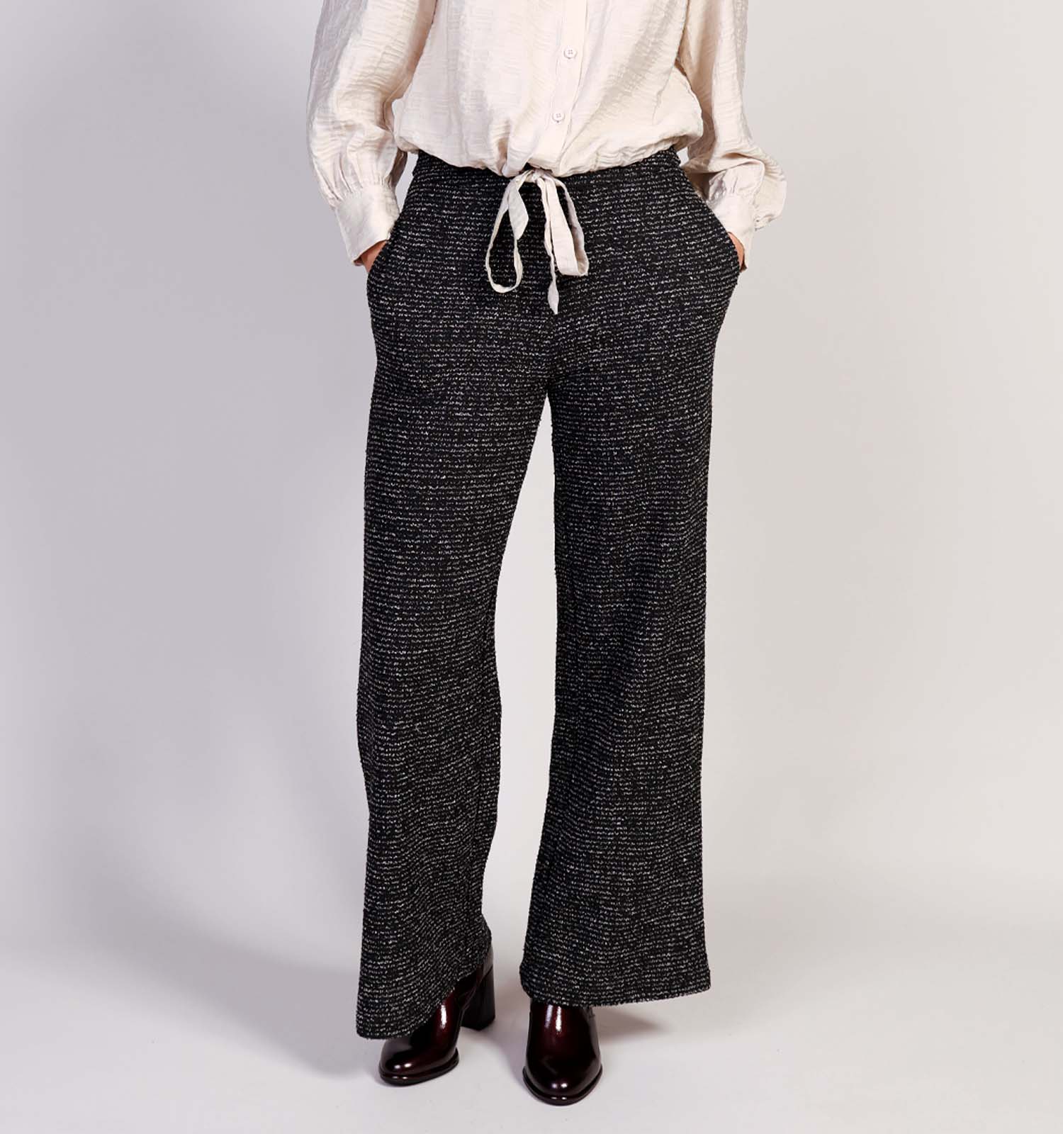 Deze geklede damesbroek heeft een mid-rise taillehoogte, en valt losvallend qua pasvorm.