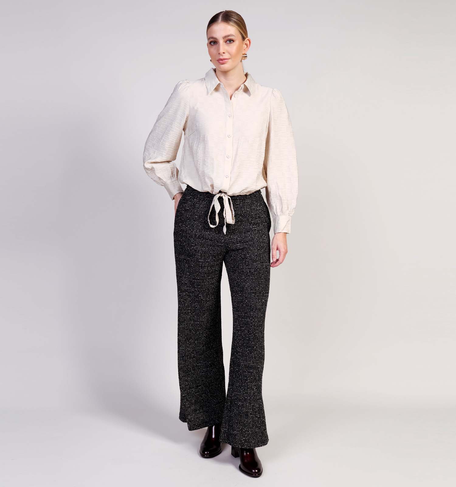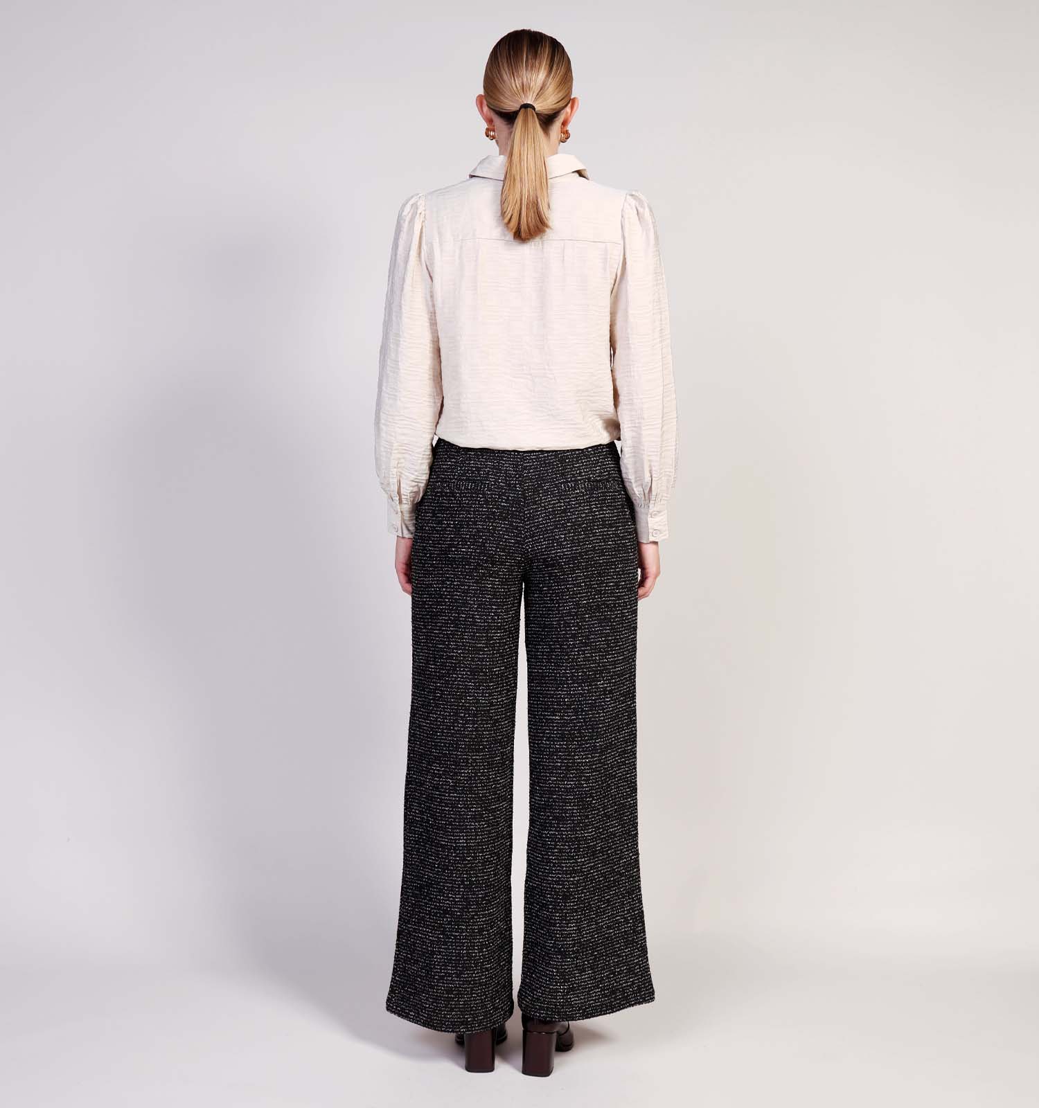 Maak je look compleet met minimalistische, witte sneakers of je favoriete pumps.