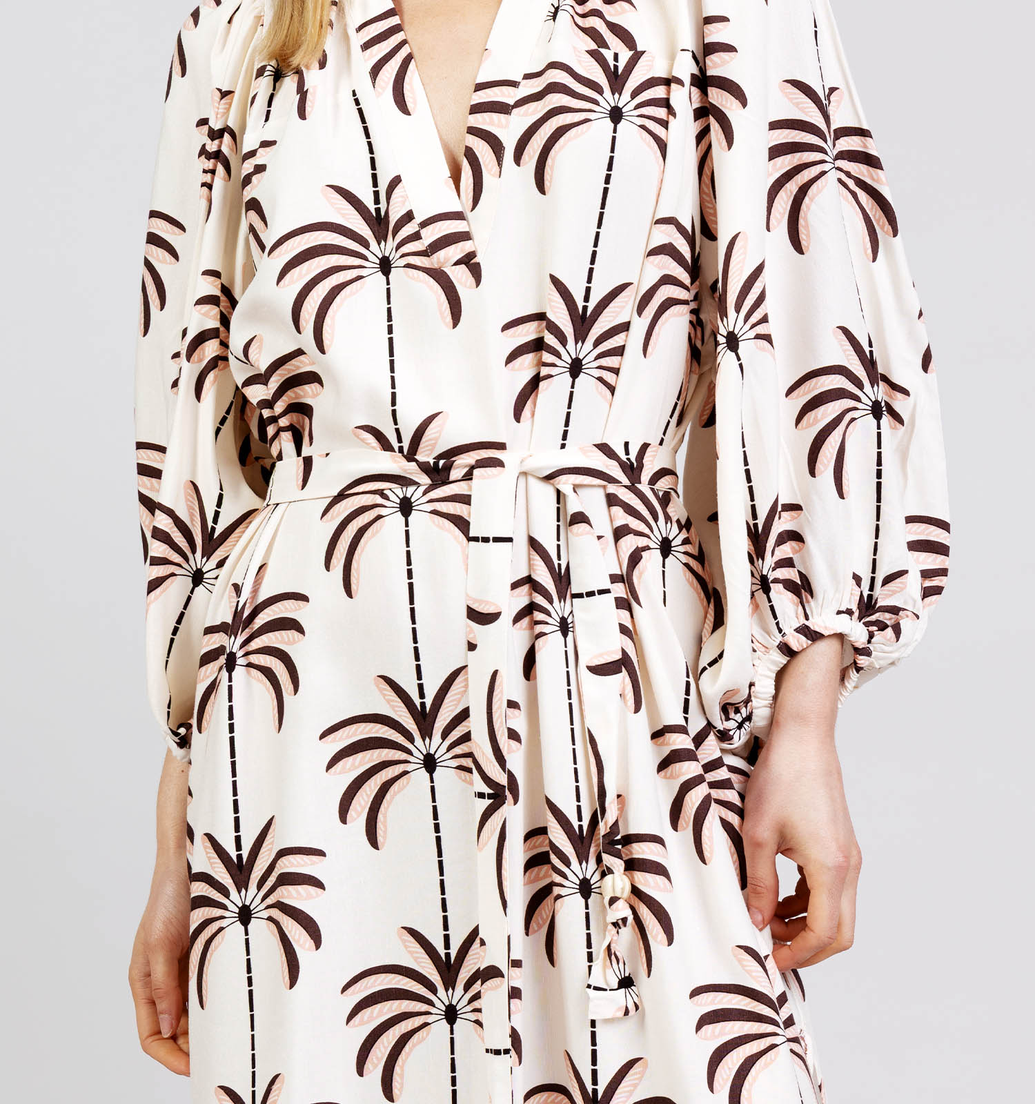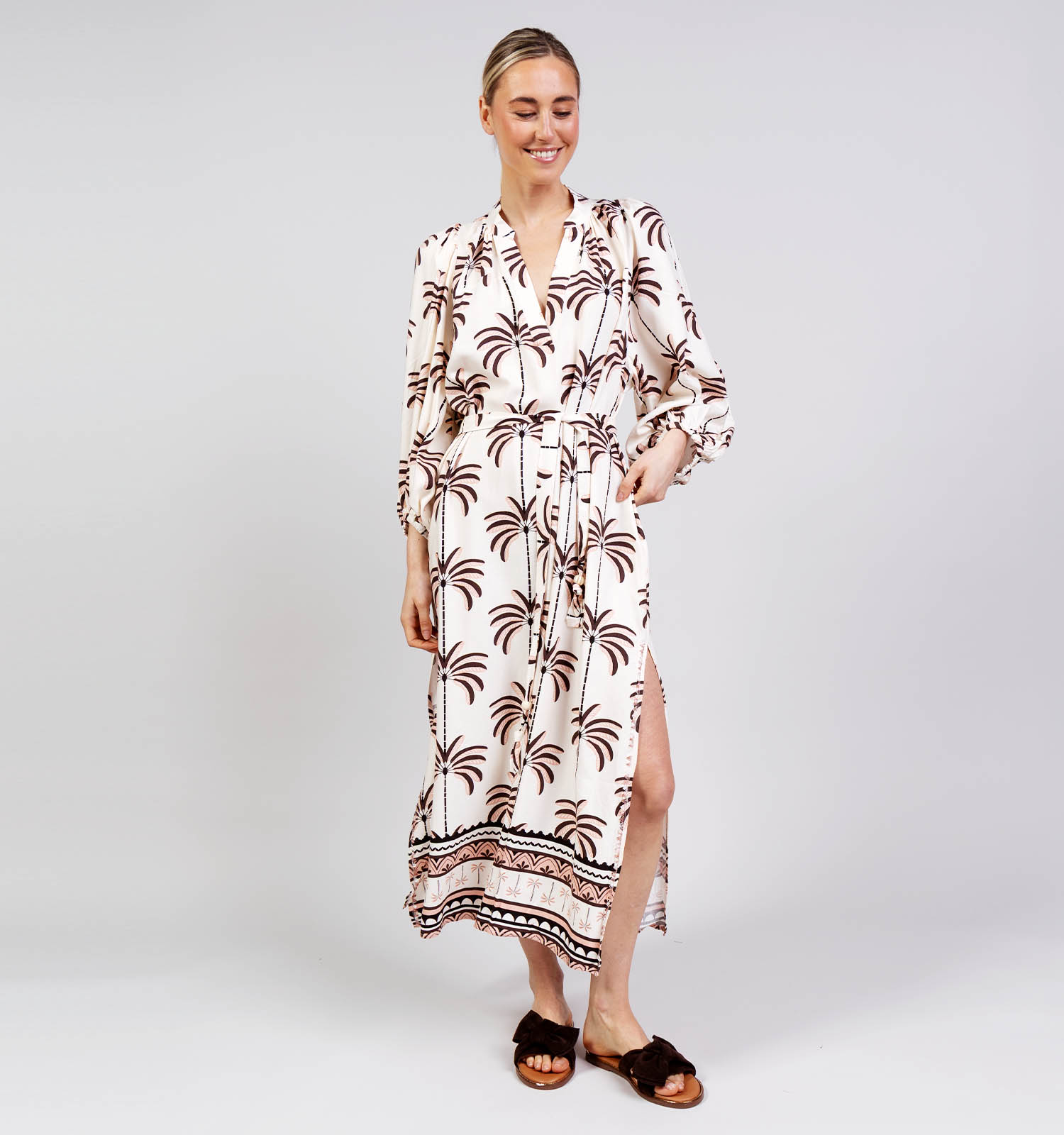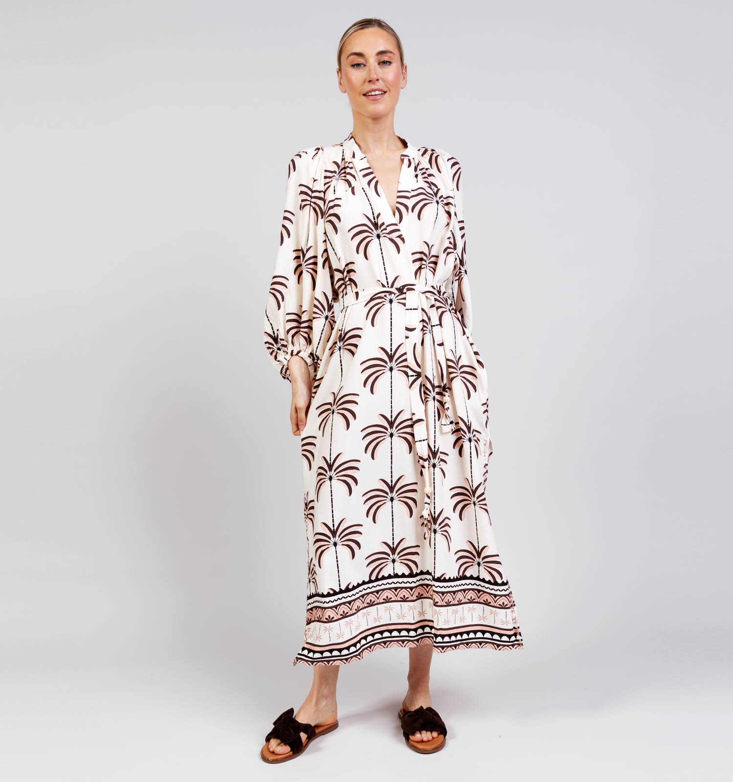Orfeo Katie Lichtbeige/Bruine Lange Jurk Palm Trees